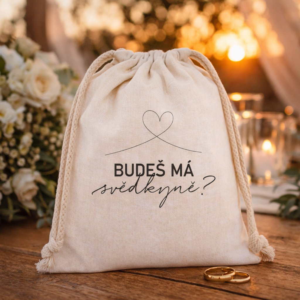 Bavlněný pytlík s potiskem BUDEŠ MÁ SVĚDKYNĚ?