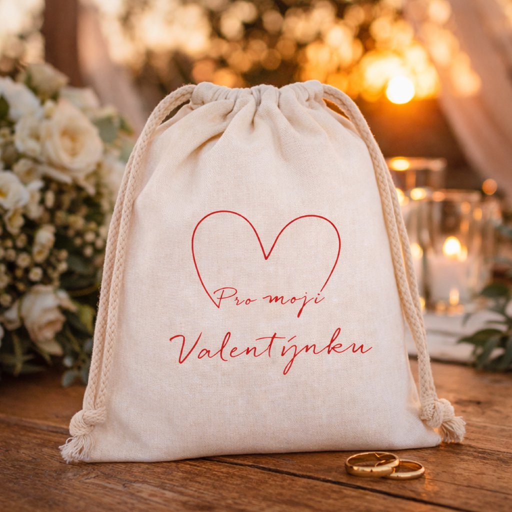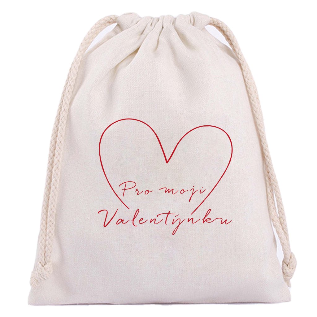 Bavlněný dárkový pytlík s potiskem pro moji Valentýnku, který celému dárku dodá to pravé kouzlo.