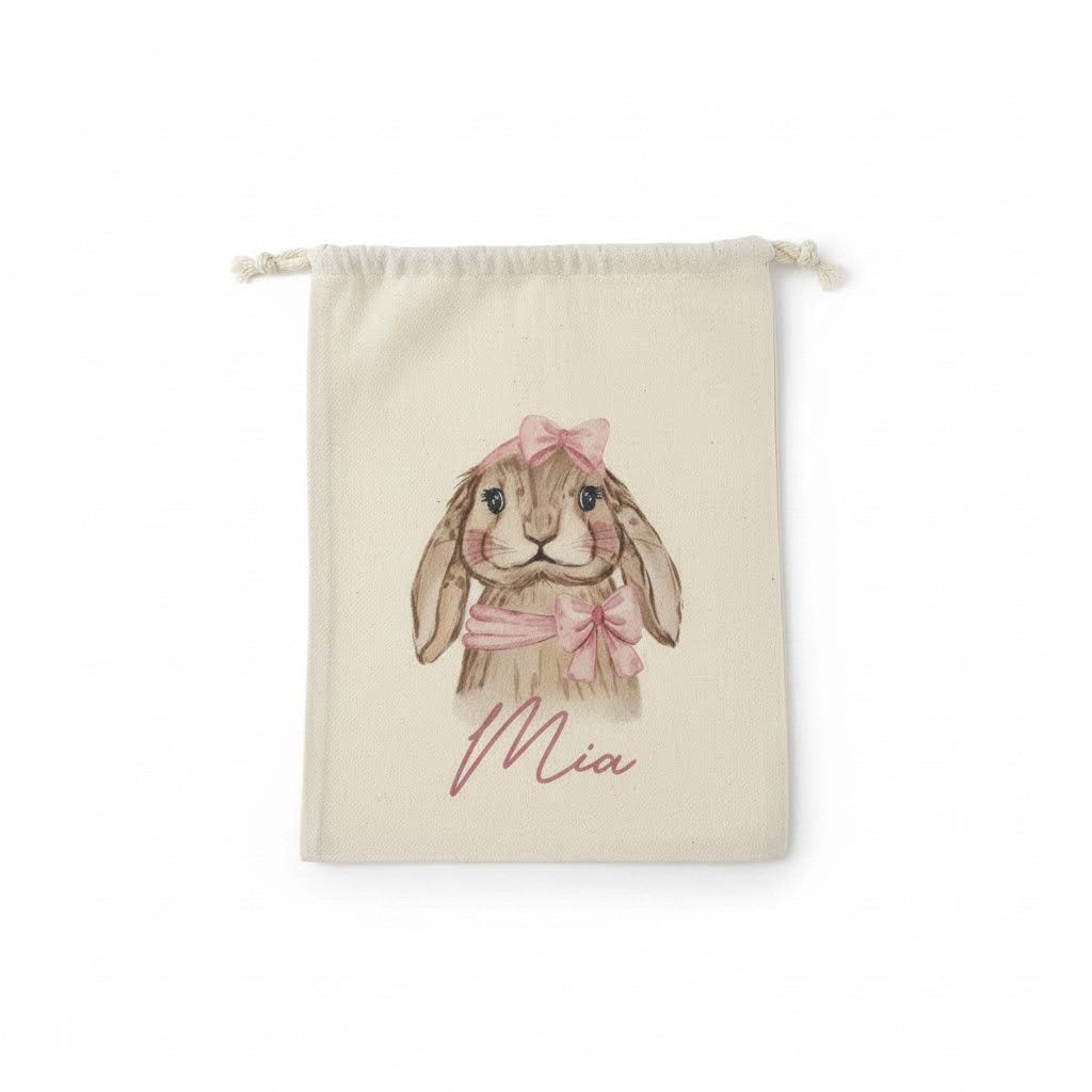 Bavlněný pytlík o rozměru 26 x 35 cm s králíčkem a jménem Mia čeká na svého nového majitele.