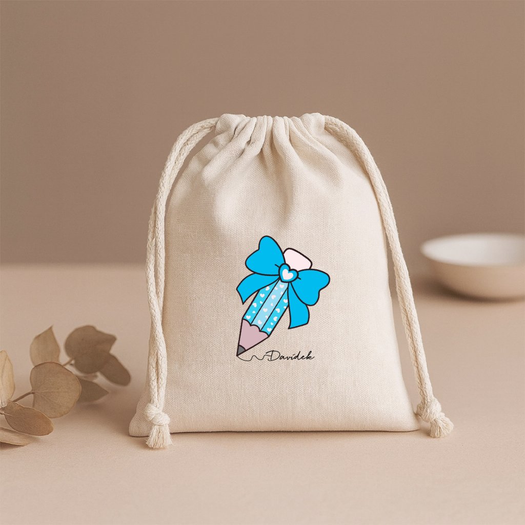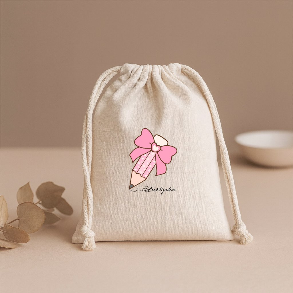 Objevte praktický a stylový bavlněný pytlík s potiskem tužky a jména, který je ideální pro každodenní použití. Tento univerzální pytlík se hodí nejen do školy či školky, ale také na různé dárkové předměty. Díky možnosti personalizace jménem vašeho dítěte bude každý pytlík jedinečný a snadno rozpoznatelný.