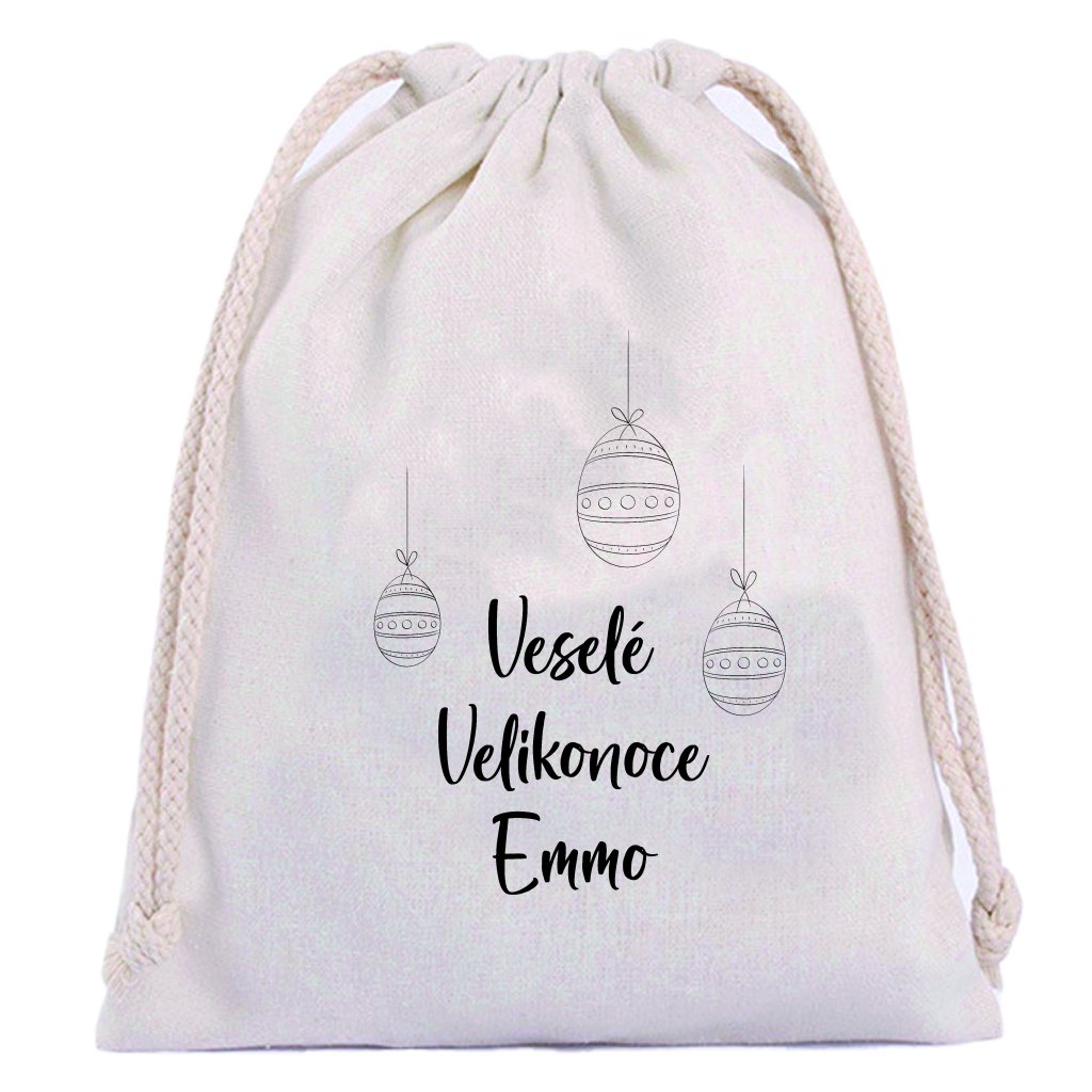 Bavlněný pytlík s vlastním jménem, který je ideální jako pytlíček na velikonoční nadílku.