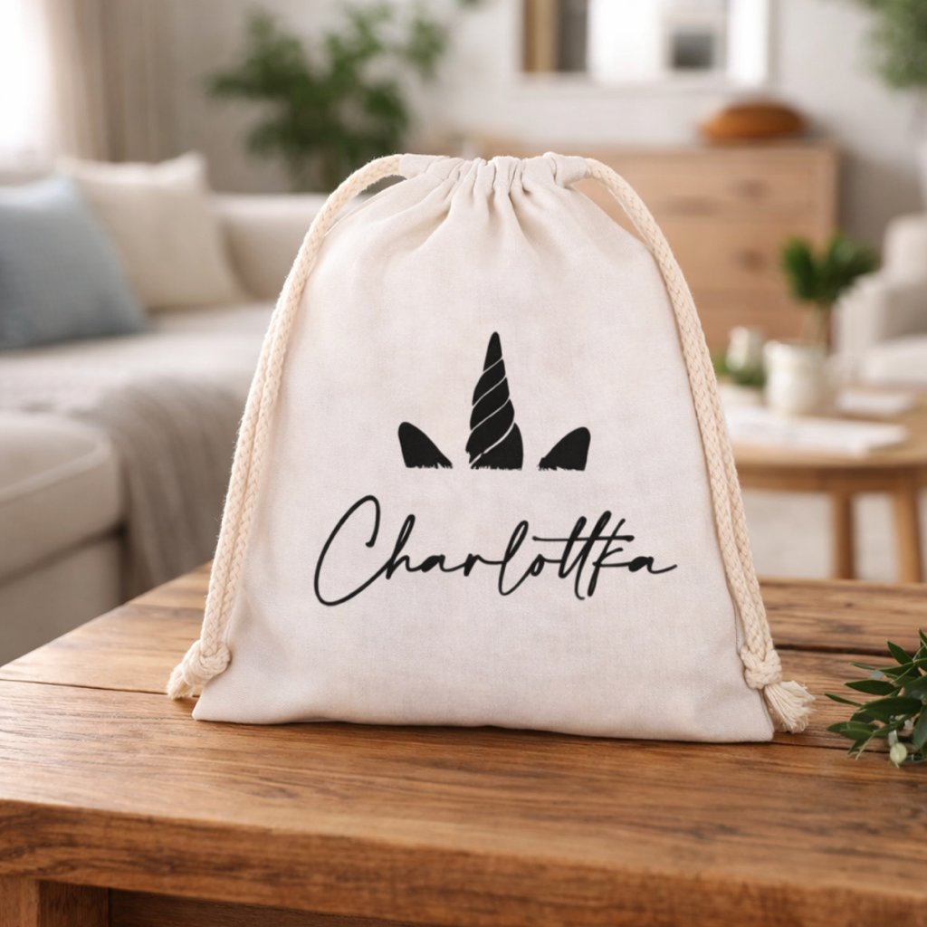 Bavlněný pytlík s vlastním jménem - JEDNOROŽEC