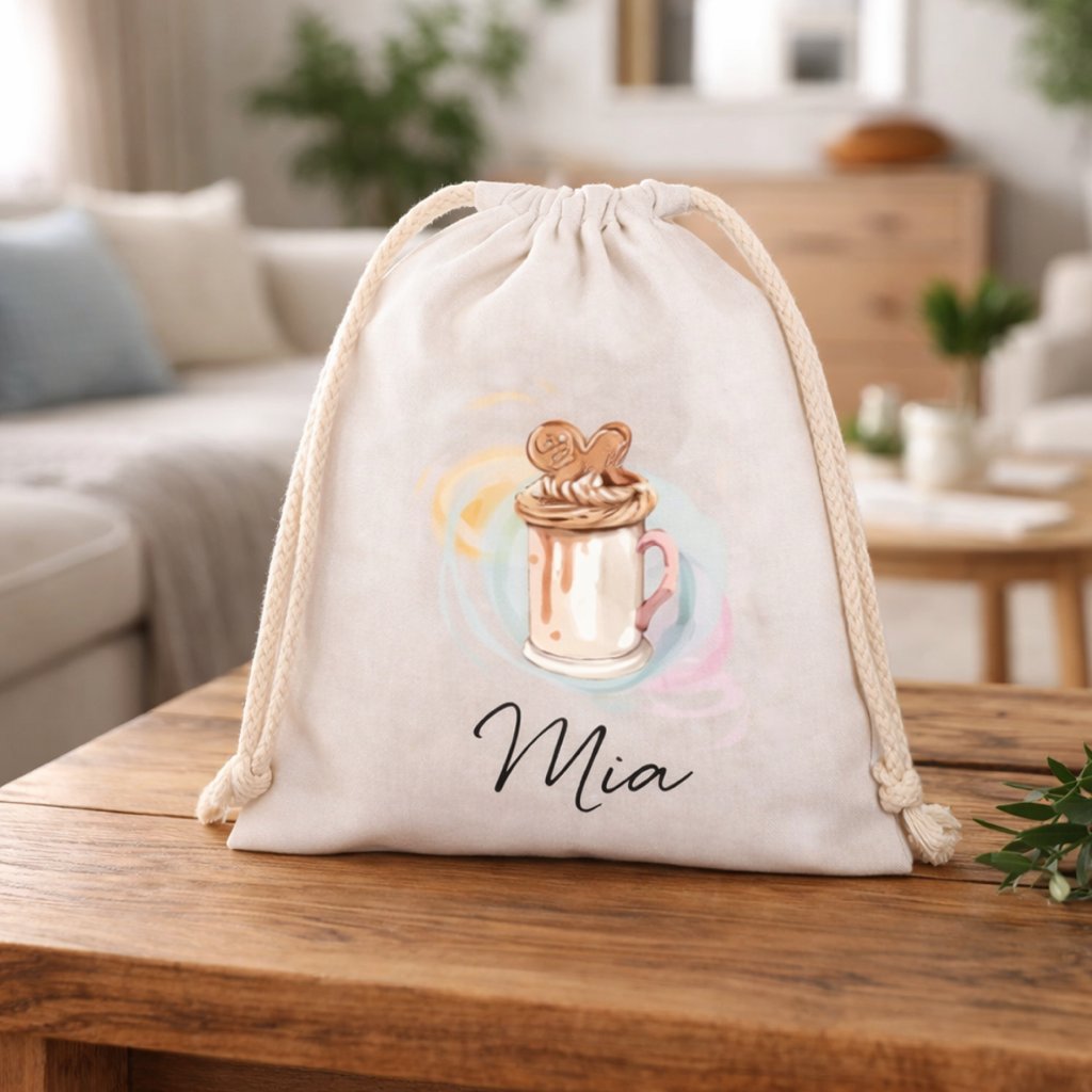 Bavlněný pytlík s volbou vlastního jména, který je ideální jako pytlíček do školy či školy, na oblečení a bačkůrky dítěte.