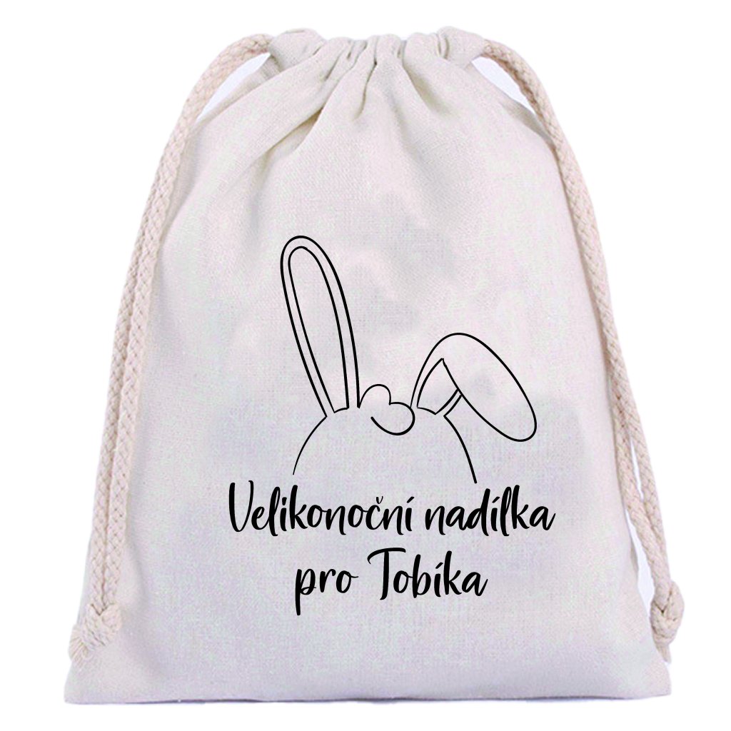 Bavlněný pytlík s vlastním jménem, který je ideální jako pytlíček na velikonoční nadílku.