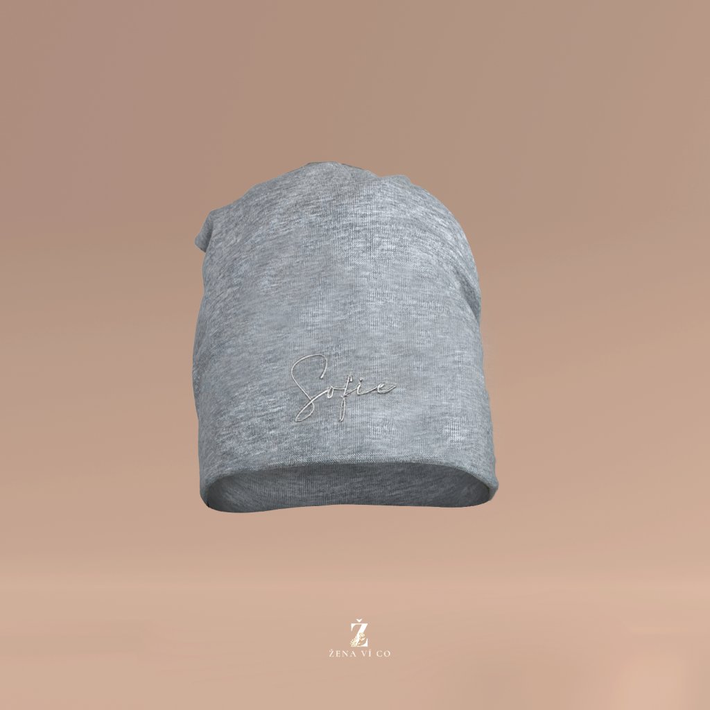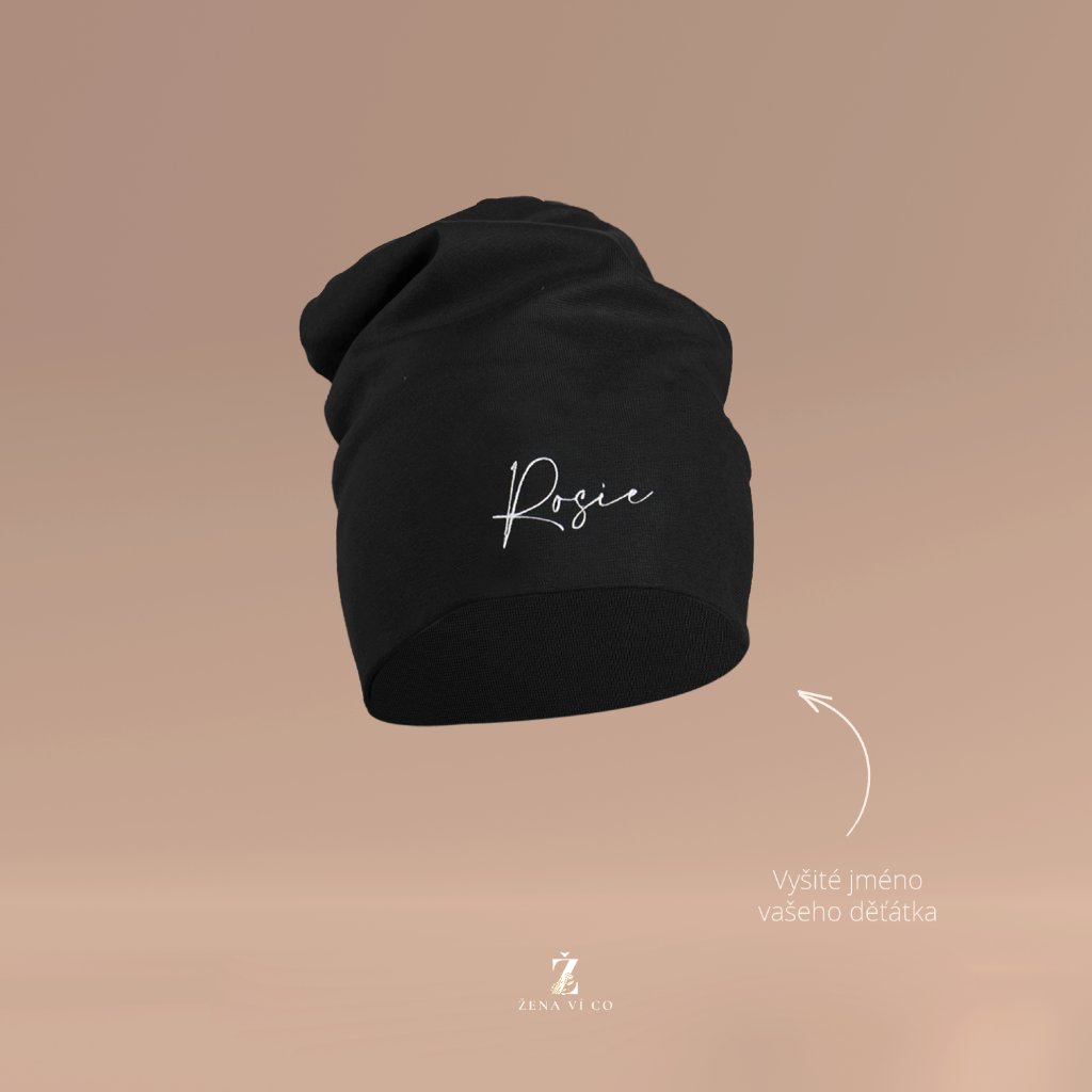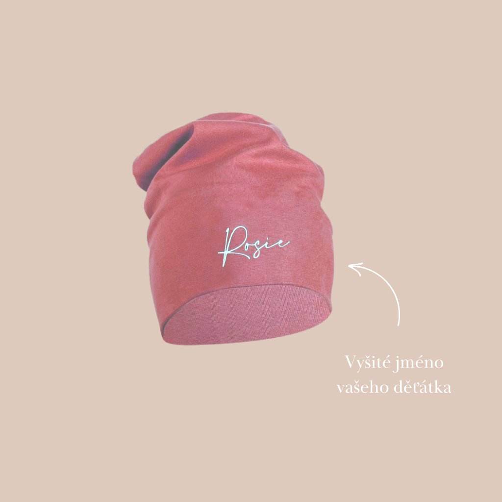 Jarní čepička s výšivkou JMÉNA, pro dítě