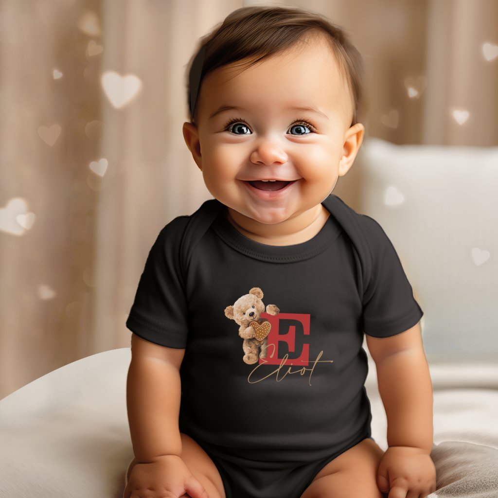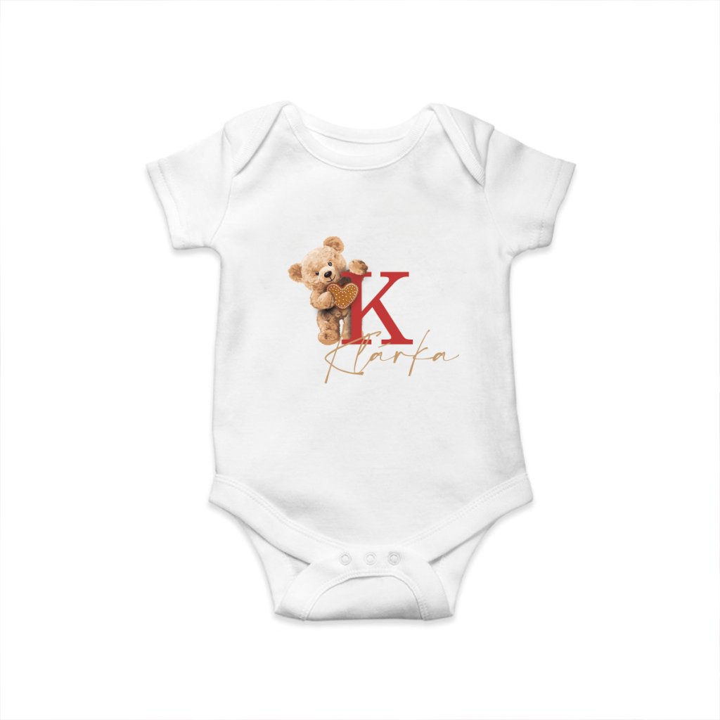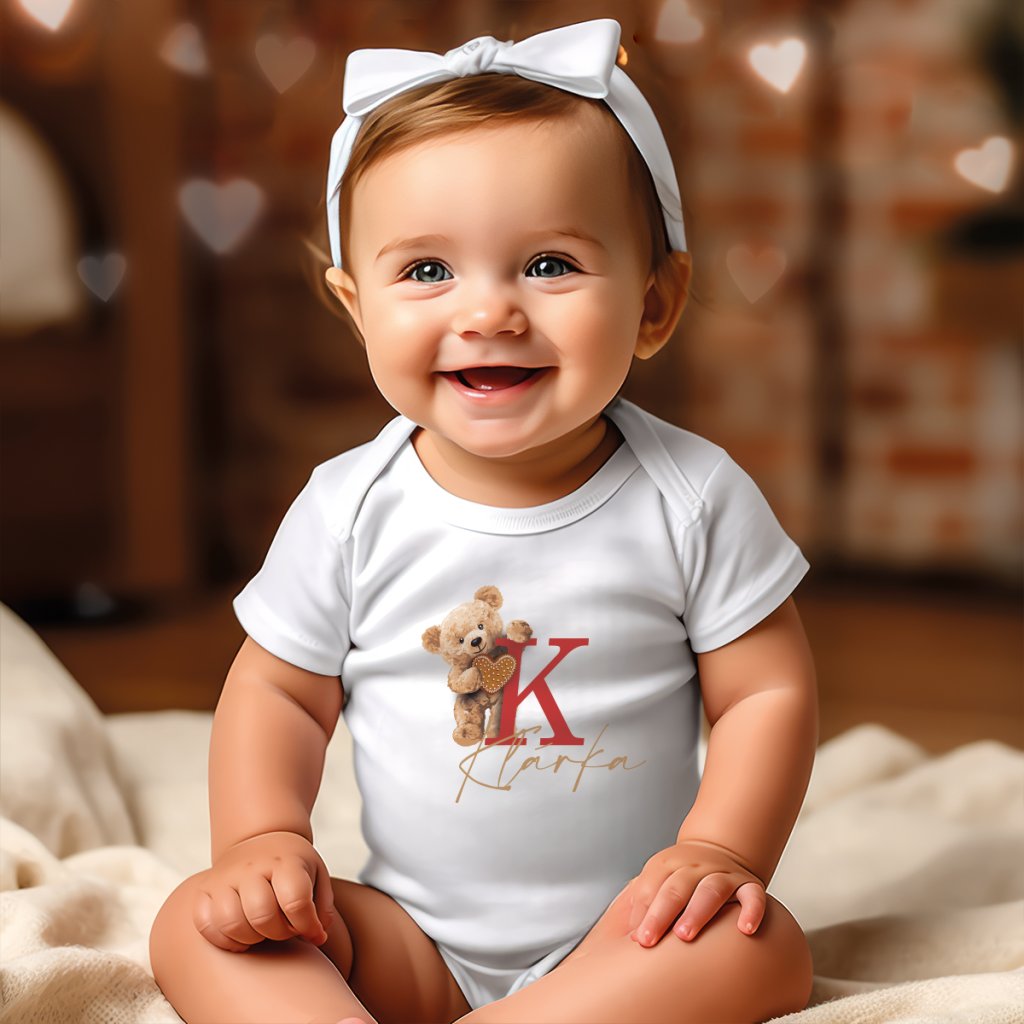 Tematické dětské bodýčko s krátkým rukávem s originálním potiskem Medvídka a s vlastním jménem.