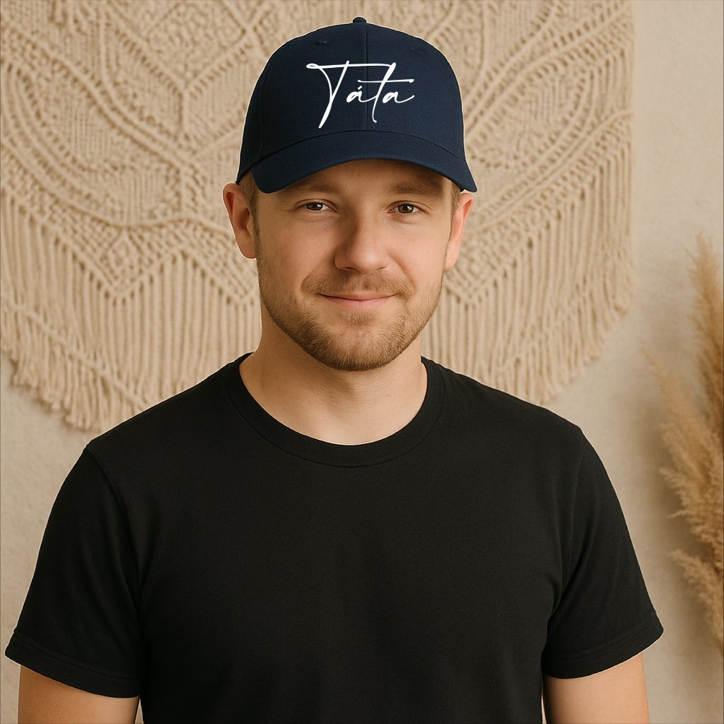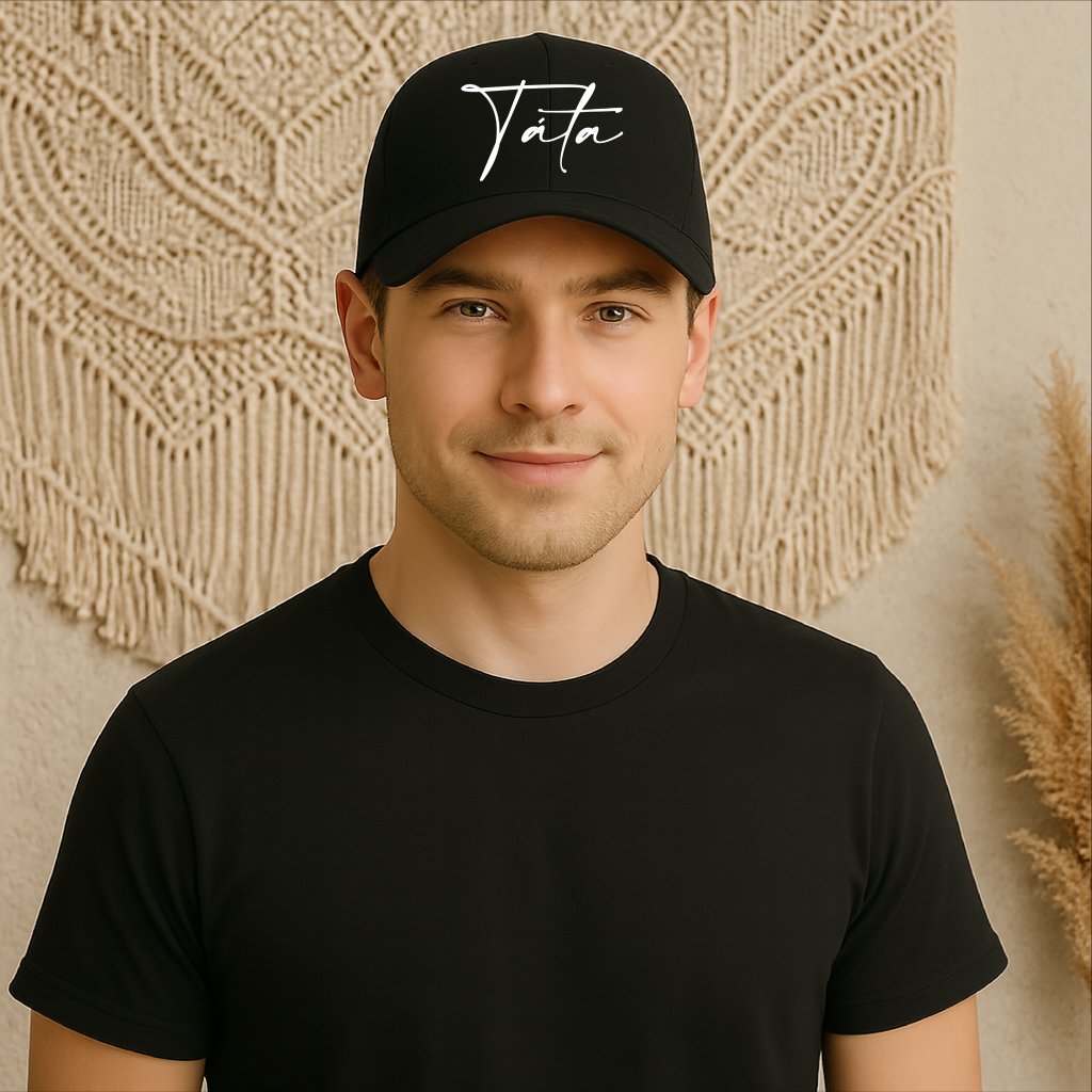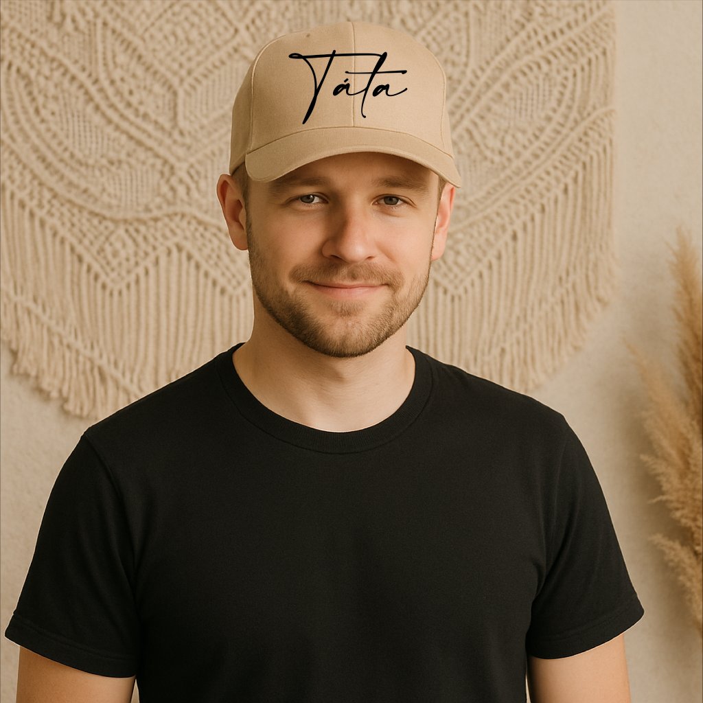 Stylová dospělá kšiltovka "TÁTA" je ideálním doplňkem pro každodenní nošení. Skvěle doladí Váš outfit na výletě, při odpolední procházce nebo i při sportovních aktivitách. Tato kšiltovka je nejen praktická, ale také elegantní díky detailní saténové výšivce, která dodává šarm a jedinečnost.