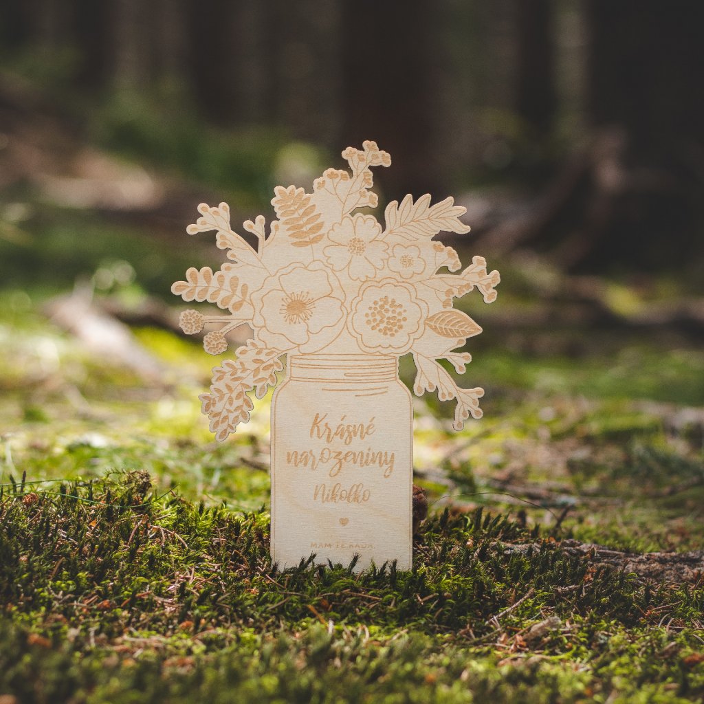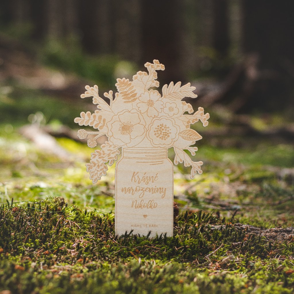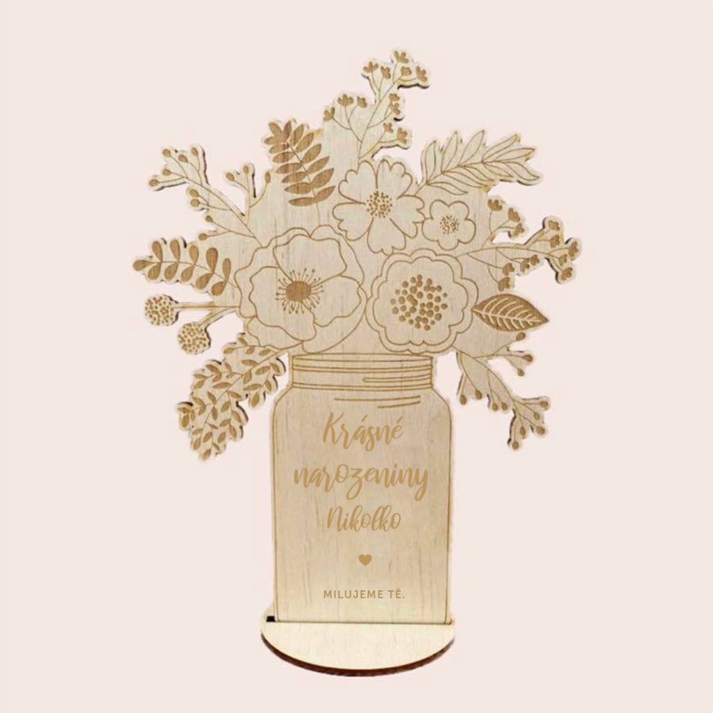 Originální dárek k narozeninám. Dřevěné květiny s věnováním s volbou vlastního jména! Dárek, který zaručeně ozdobí jejich domácnost a vykouzlí úsměv na tváři.