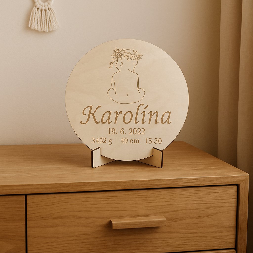 Originální dárek k narození miminka. Dřevěná dekorace s gravírováním která vykouzlí úsměv na tváři.