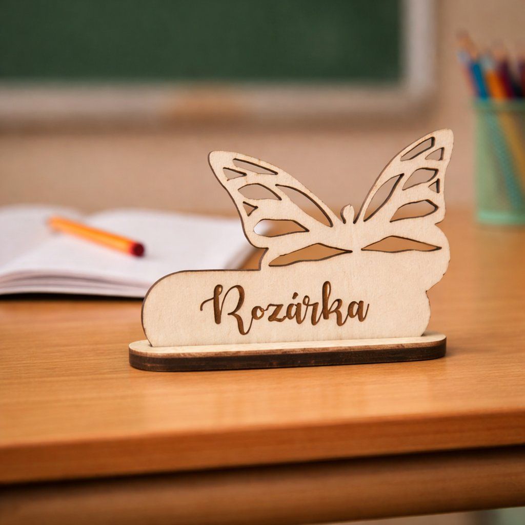 Dřevěná jmenovka s gravírováním vlastního jména MOTÝLEK
