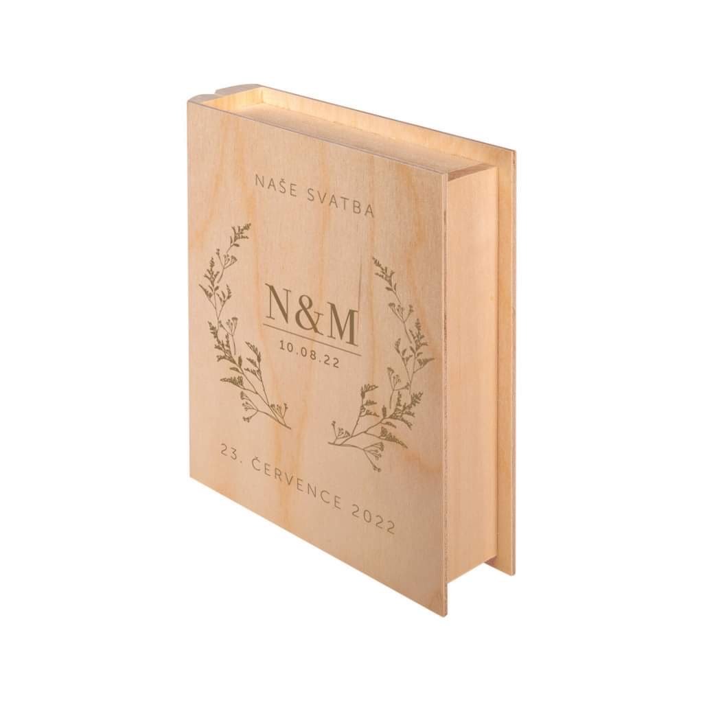 Dřevěná kniha NÁŠE SVATBA - KVĚTINY