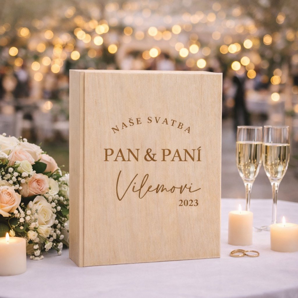 Dřevěná kniha s vlastním textem PAN A PANÍ