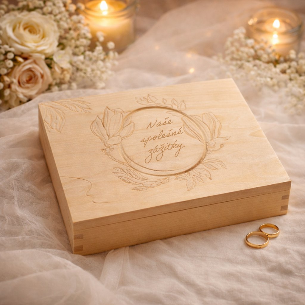 Dřevěná krabička na fotky NAŠE SPOLEČNÉ ZÁŽITKY