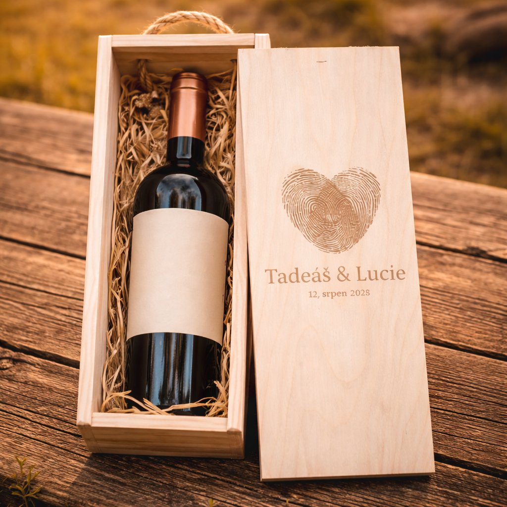 Na krabičku je možno vygravírovat vaše jména, a datum seznámení (prosím uveďte do poznámky)