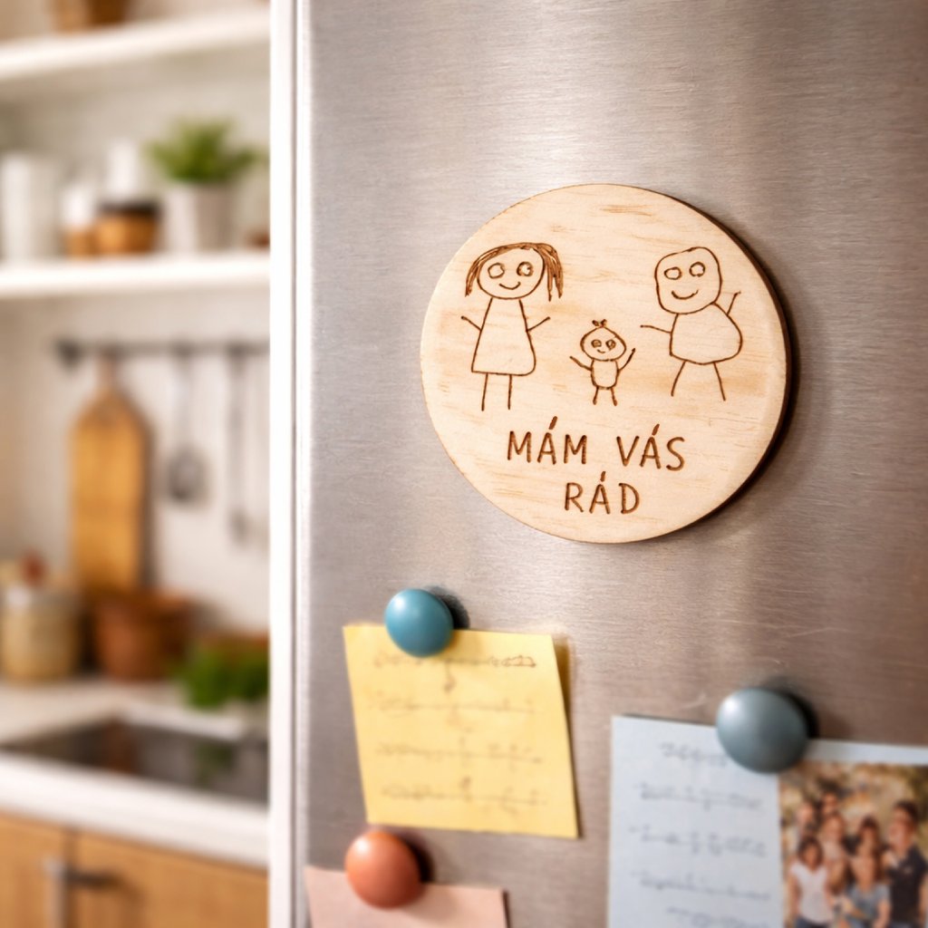 Zachyťte vzácný okamžik pomocí magnetky s gravírováním dětského obrázku. Naše dřevěná magnetka s gravírováním obrázku Vašeho dítěte je originální a osobní doplněk, který potěší každého rodiče, prarodiče nebo blízkého. U finálně vygravírovaného obrázku mohou vzniknout jemné odlišnosti, obrázky pro Vás překreslujeme vždy ručně. Svoji fotografii zašlete na e-mail zenavico@afw.cz a do zprávy uveďte své jméno a číslo objednávky.