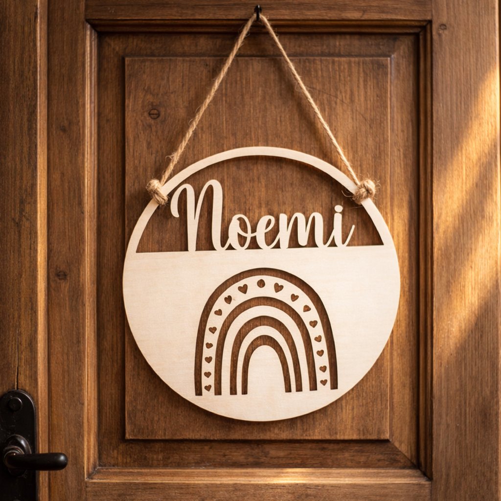 Dřevěná ozdoba na dveře s vlastním jménem DUHA