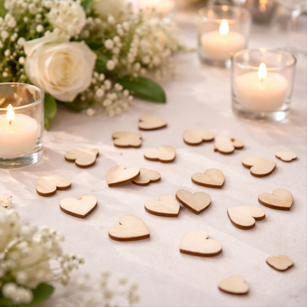Dřevěné srdíčka jsou skvělé k dozdobení krabiček, svatebních stolů nebo pro domácí dekorování.