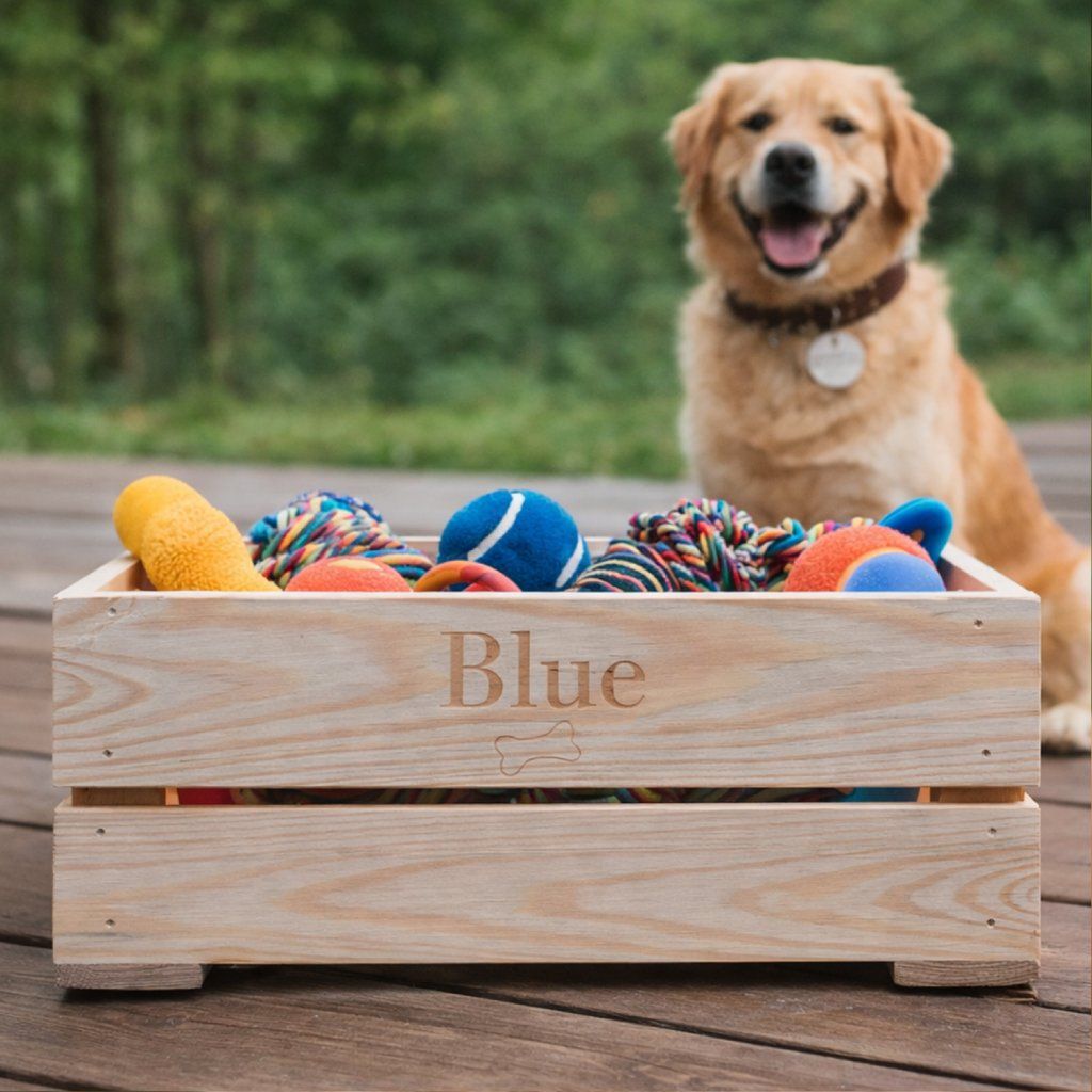 Dřevěná přenoska pro pejsky se jménem. Skvělý způsob jak uschovat například hračky nebo pamlsky Vašeho pejska.