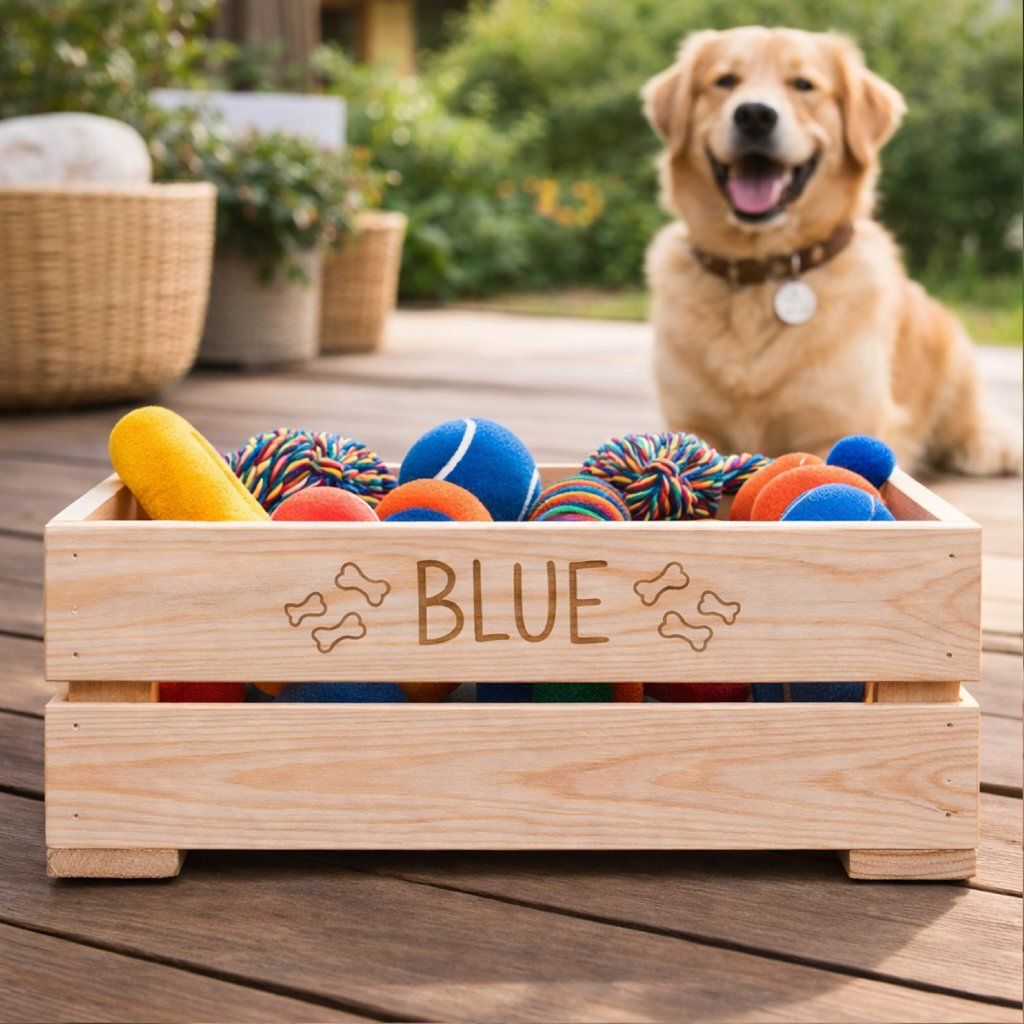 Dřevěná přenoska pro pejsky se jménem. Skvělý způsob jak uschovat například hračky nebo pamlsky Vašeho pejska.