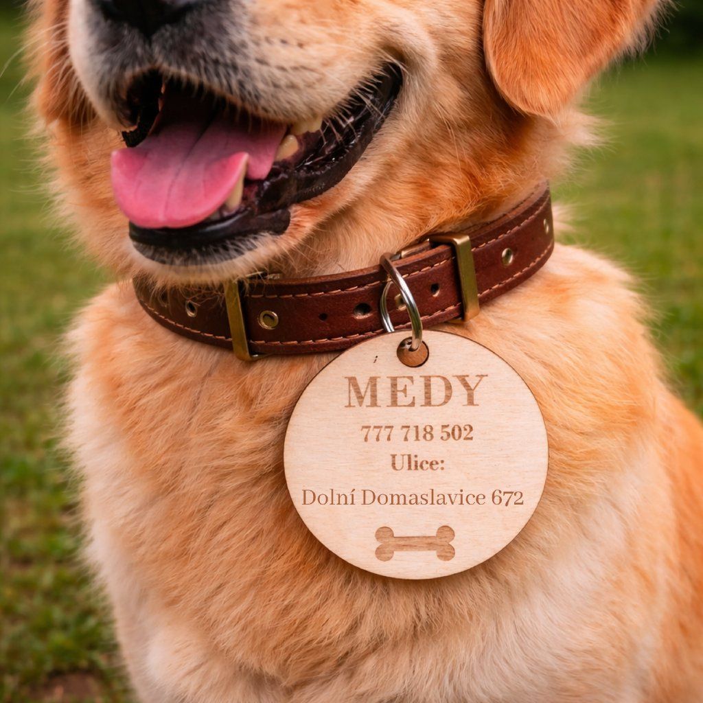 Skvělé dřevěné psí známky pro Vaše pejsky, na které Vám vygravírujeme všechny potřebné údaje, kdyby se Váš pejsek zatoulal.
