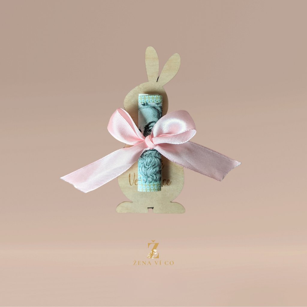 Dřevěná velikonoční dekorace na peníze ZAJÍC/VAJÍČKO