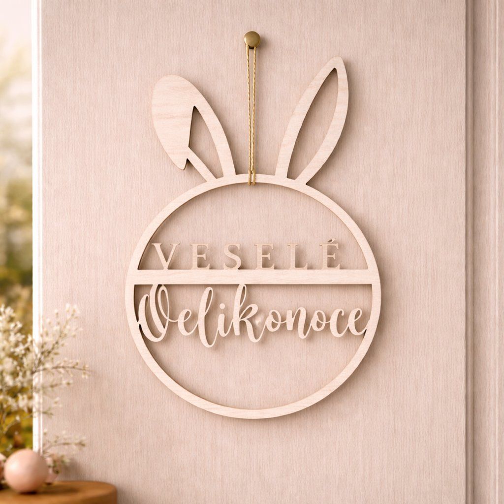 Dřevěná Velikonoční ozdoba na dveře OUŠKA
