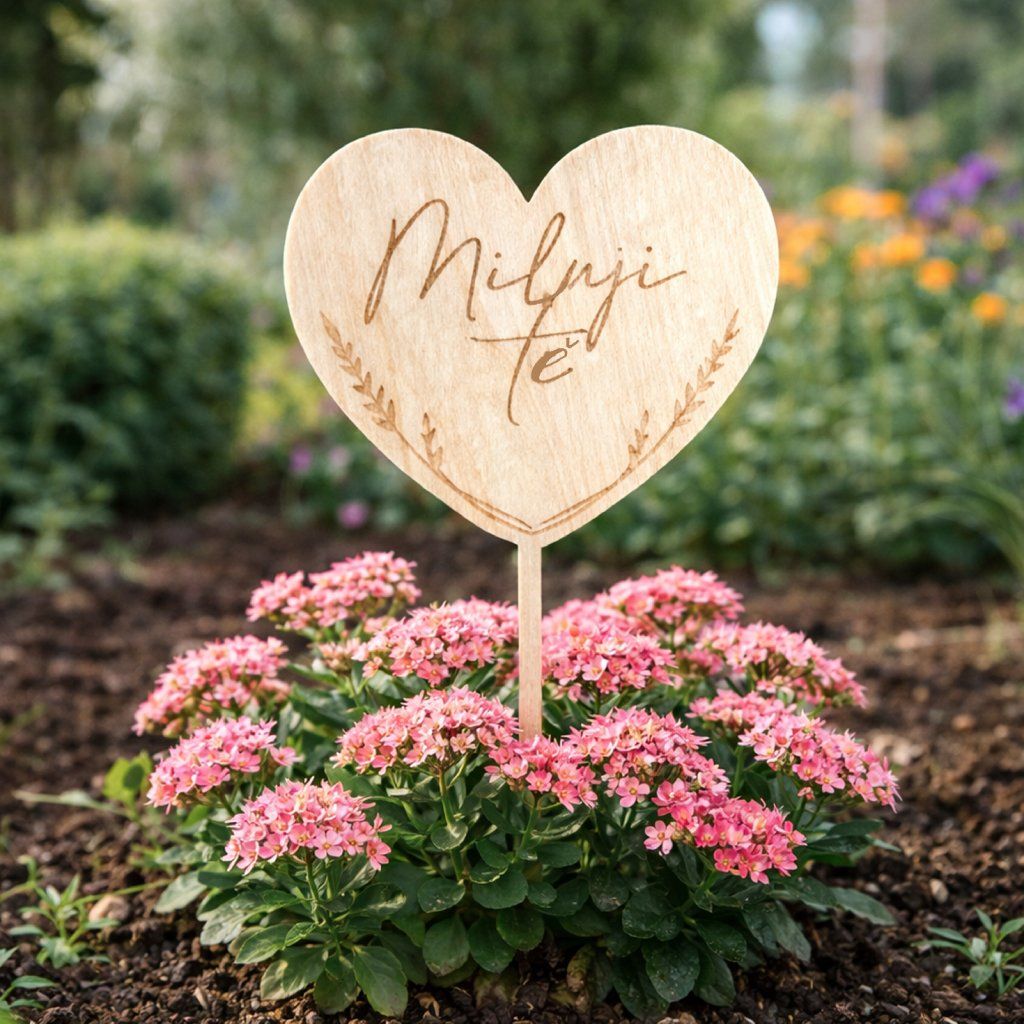 Dřevěná zapichovací ozdoba miluji tě, je skvělou dekorací na dozdobení květiny nebo dortu.