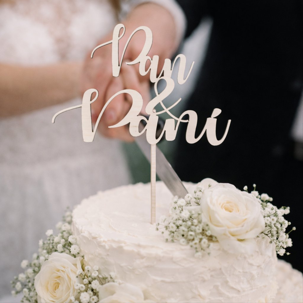 Dřevěná zapichovací ozdoba Pan & Paní je skvělou dekorací na ozdobu svatebního dortu!