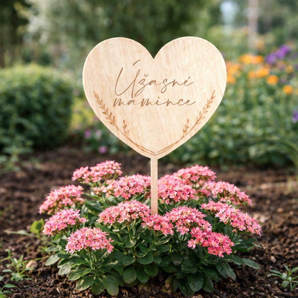 Dřevěná zapichovací ozdoba úžasné mamince, je skvělou dekorací na dozdobení květiny nebo dortu.