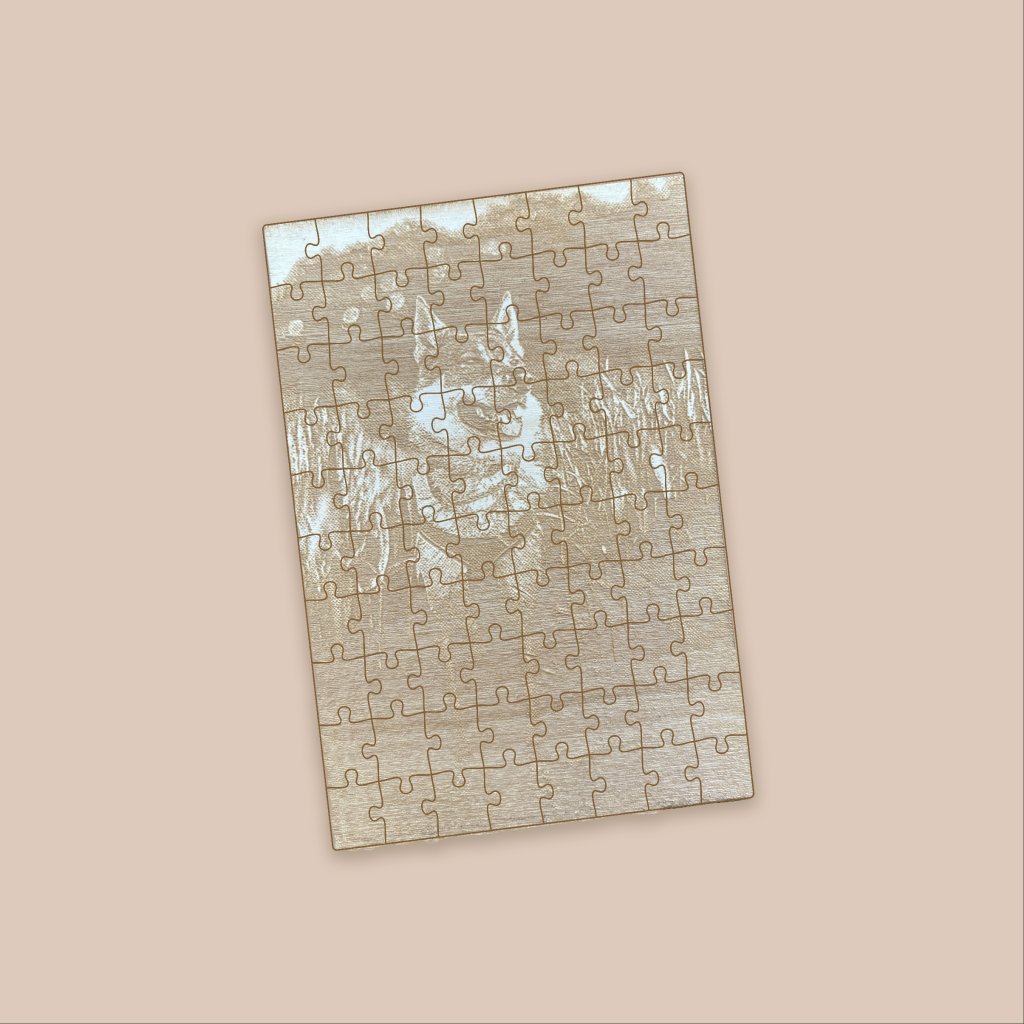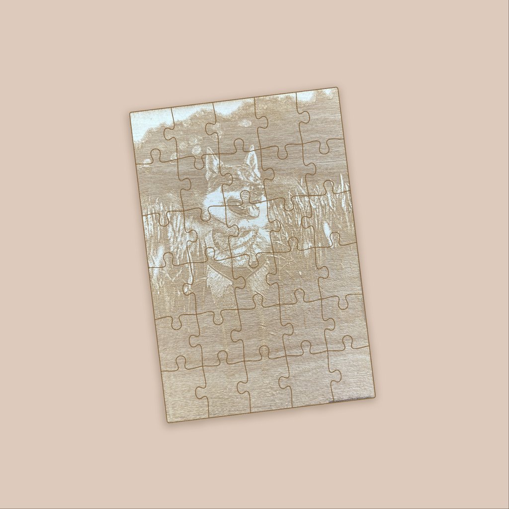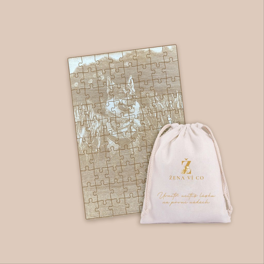 Dřevěné puzzle s gravírováním vlastní fotografie mazlíčka