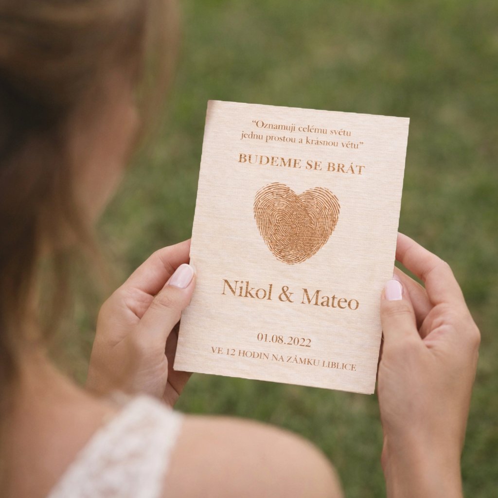 Dřevěné svatební oznámení OTISKY