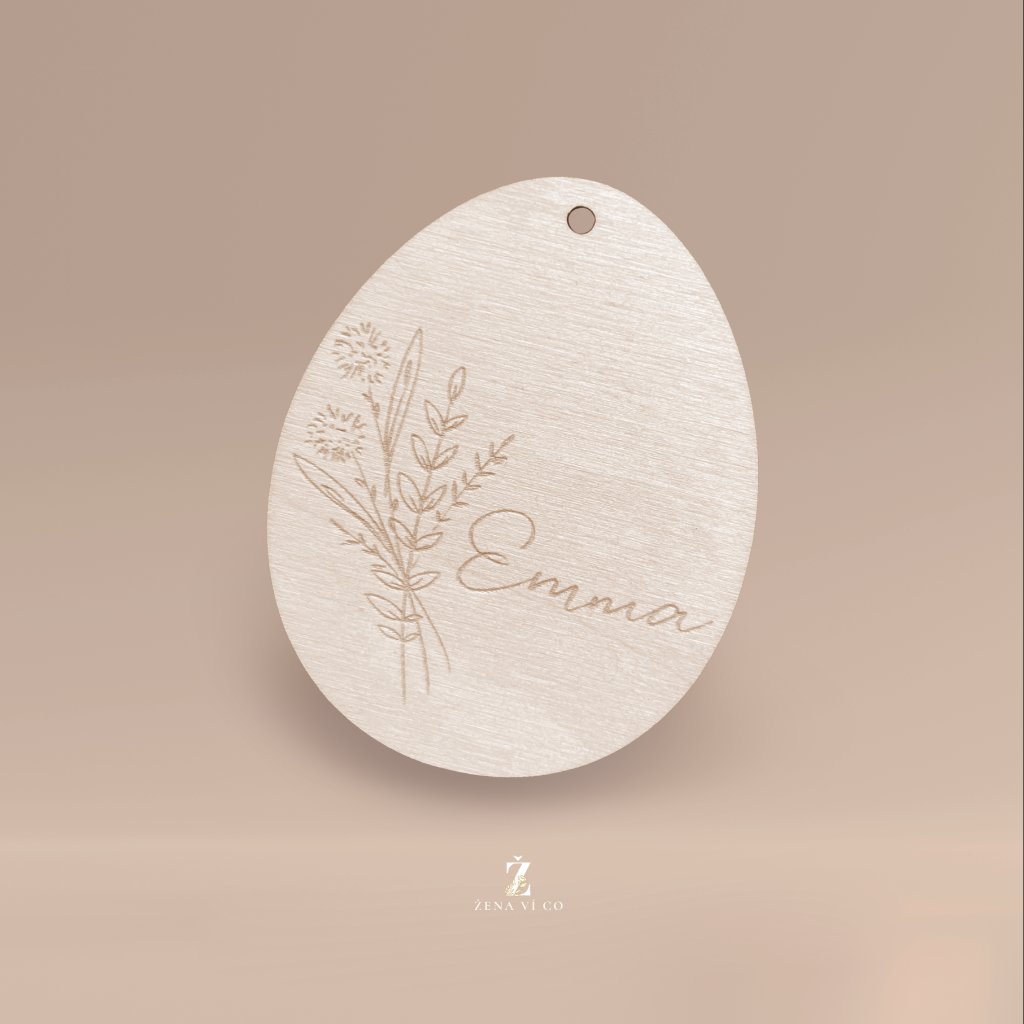 Dřevěné Velikonoční vajíčko na zavěšení s vlastním jménem - KVÍTÍ