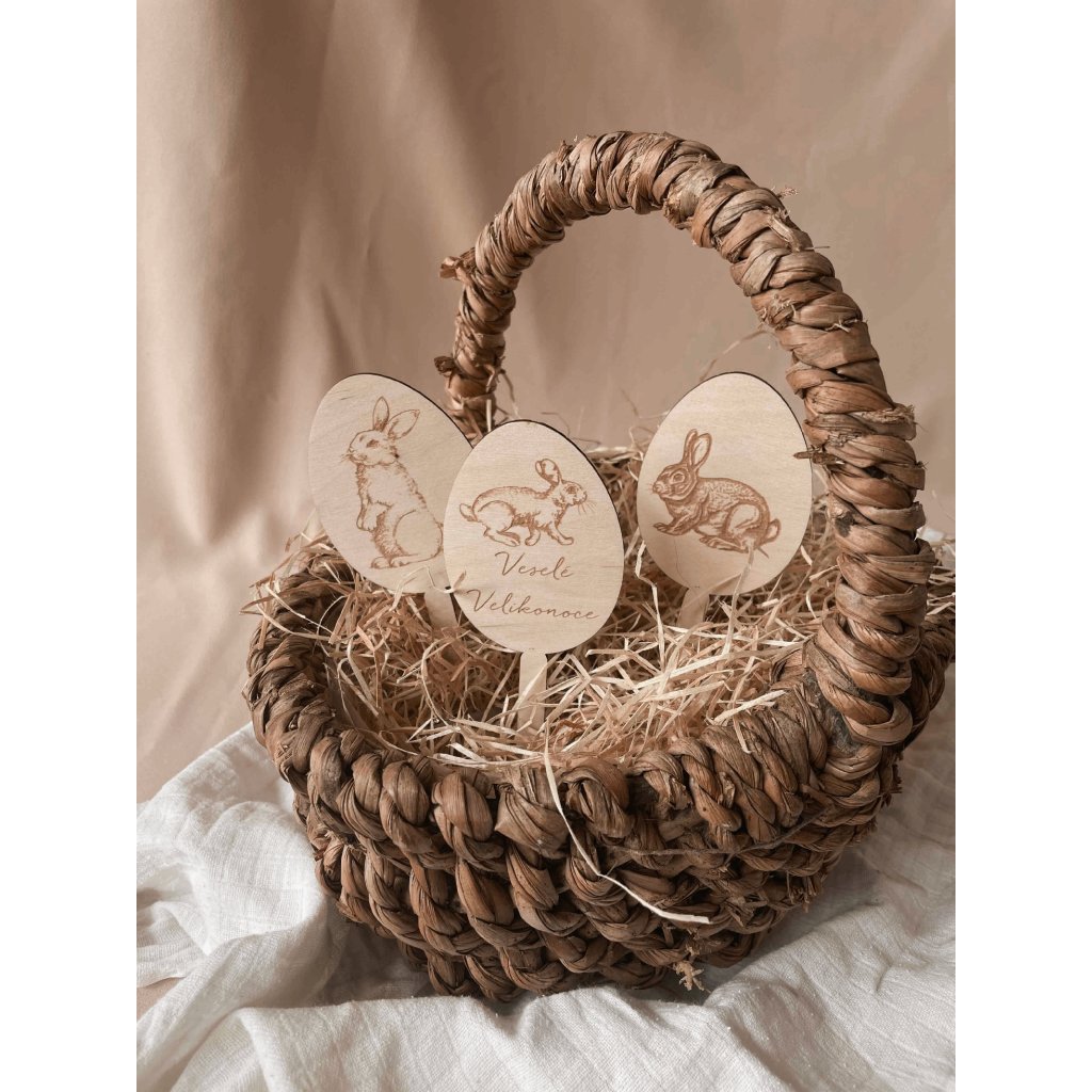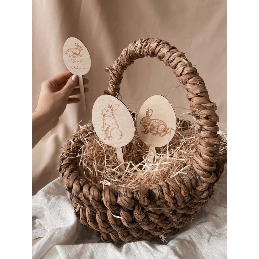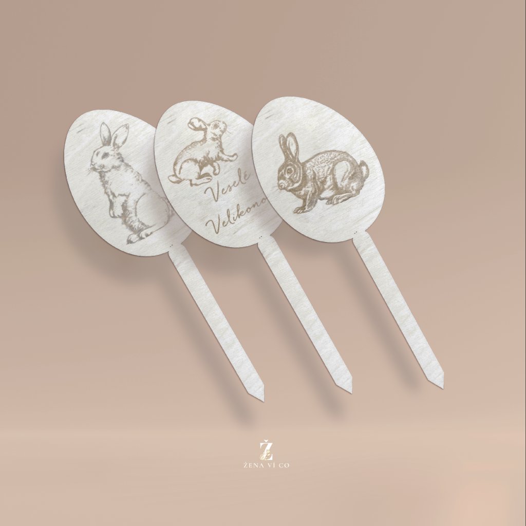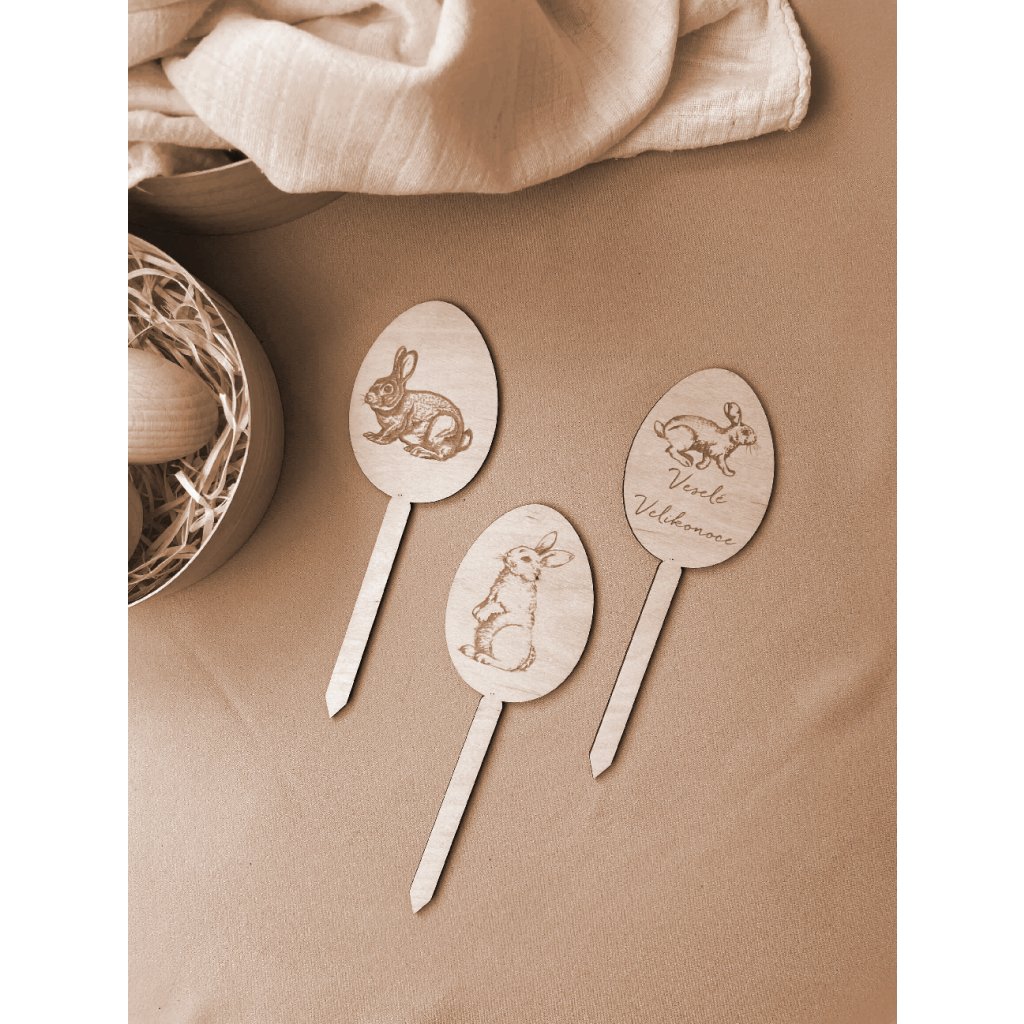Dřevěné zapichovací ozdoby, které můžete doplnit ke své Velikonoční výzdobě a ozdobit si tak například květináč.