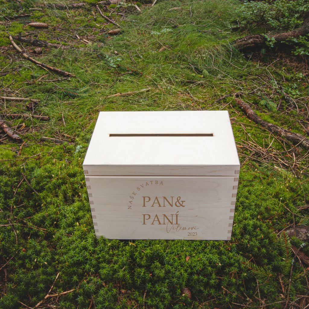 Dřevěný box na svatební přání s vlastním příjmením PAN A PANÍ