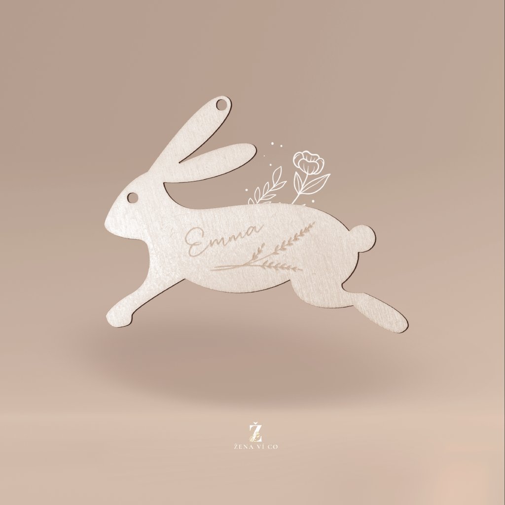 Dřevěný Velikonoční zajíček na zavěšení s vlastním jménem, kterého můžete doplnit ke své Velikonoční výzdobě nebo třeba zavěsit na dveře čí květinu.