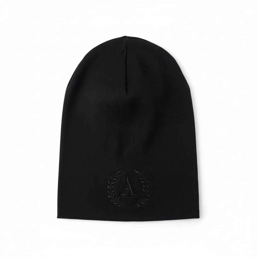 Jarní čepička s černou výšivkou A, černá