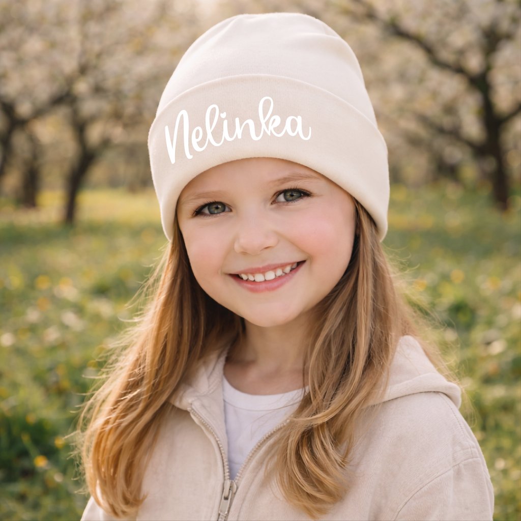 Jarní čepička s potiskem JMÉNA, pro dítě