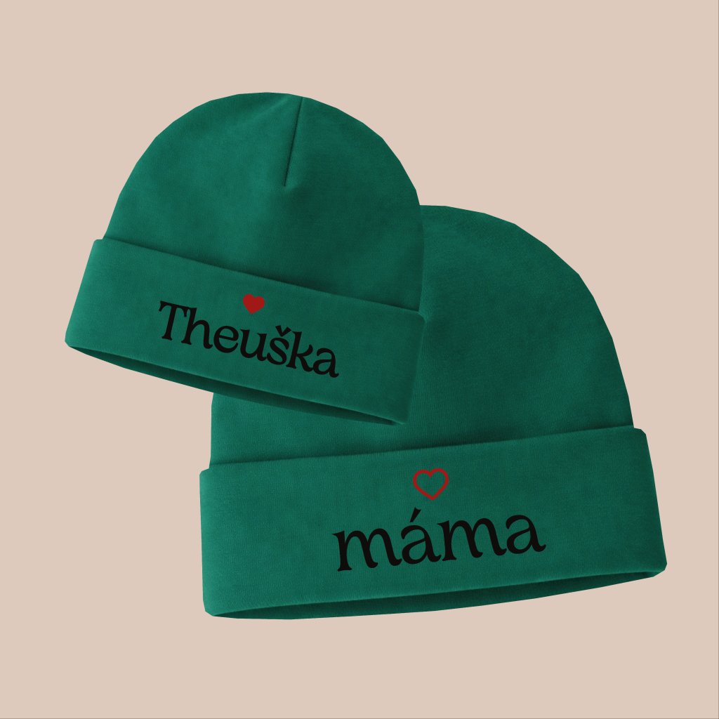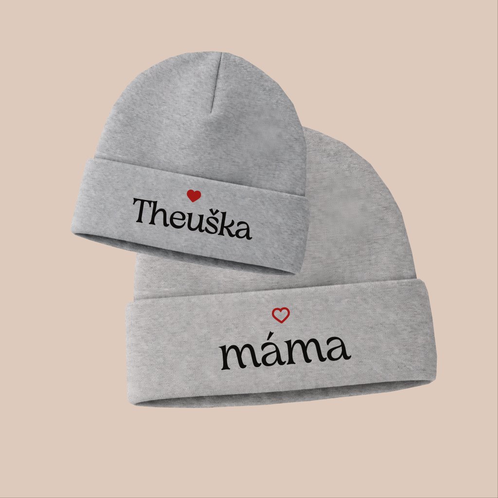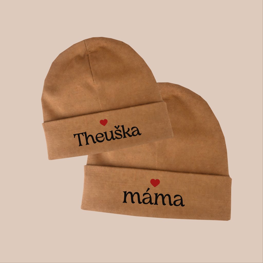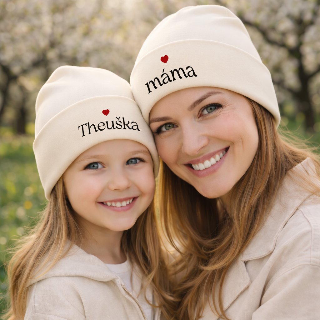 Jarní čepička s potiskem MÁMA a JMÉNEM DÍTĚTE