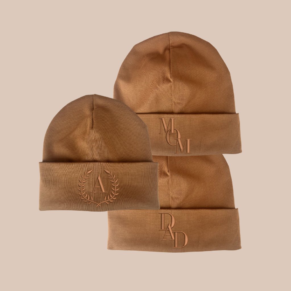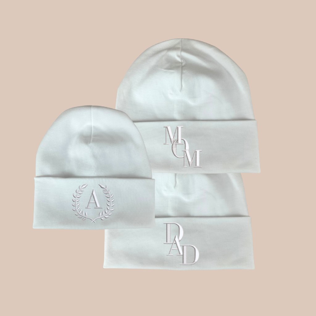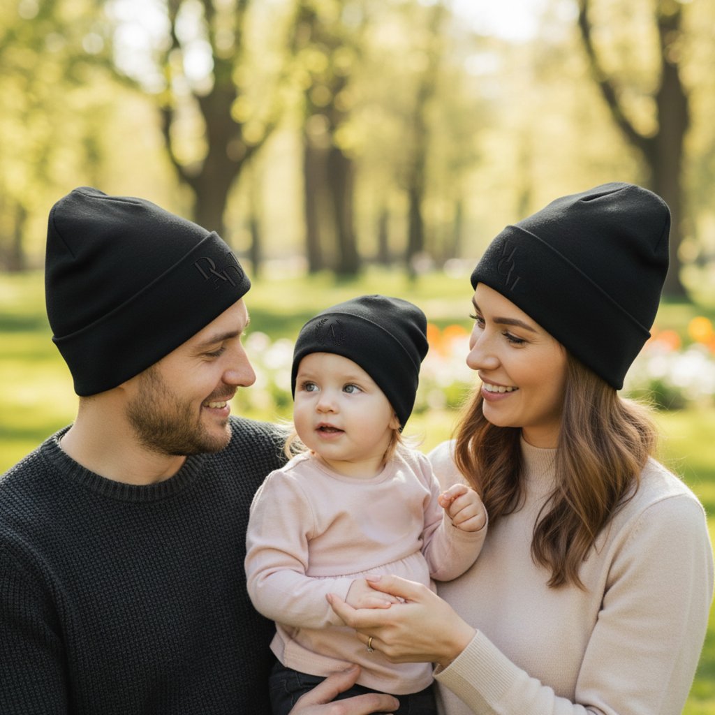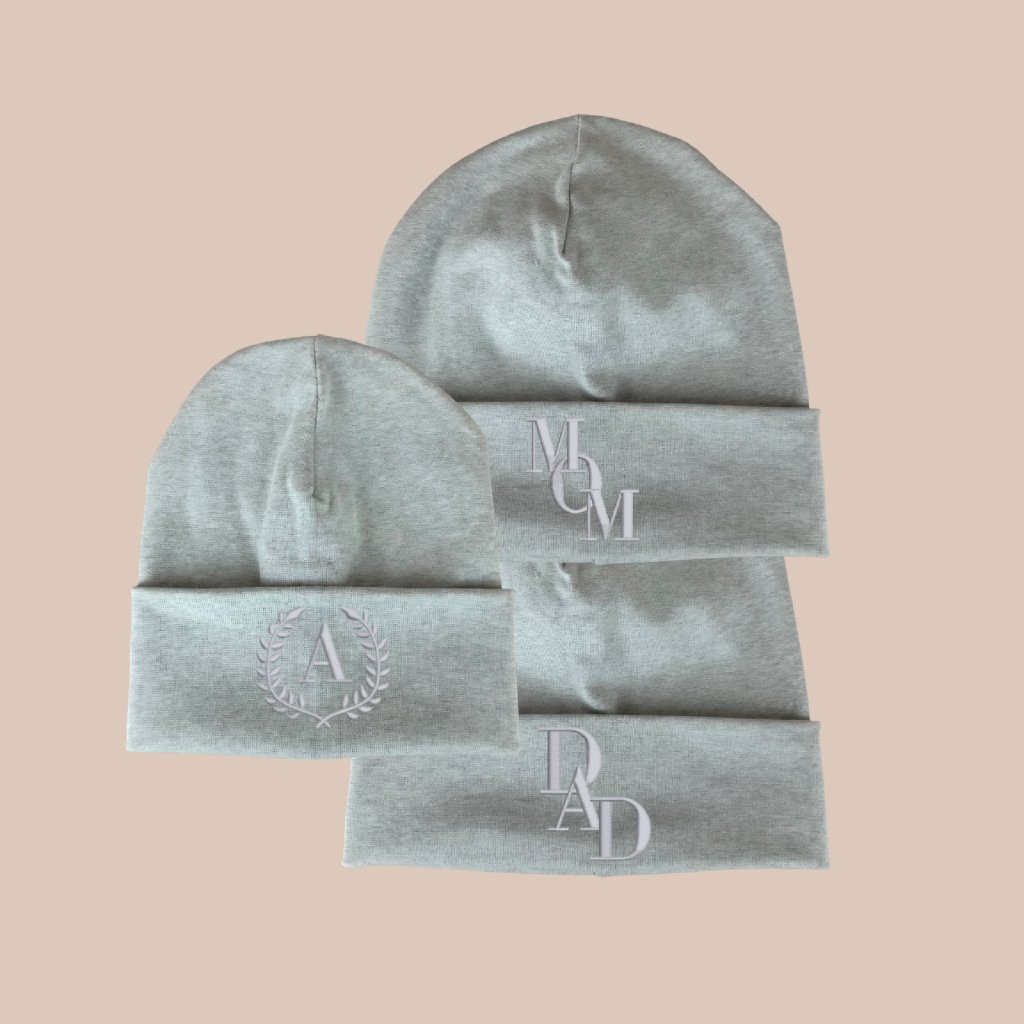 Jarní párová čepička s vyšitím pro mámu, tátu a dítě