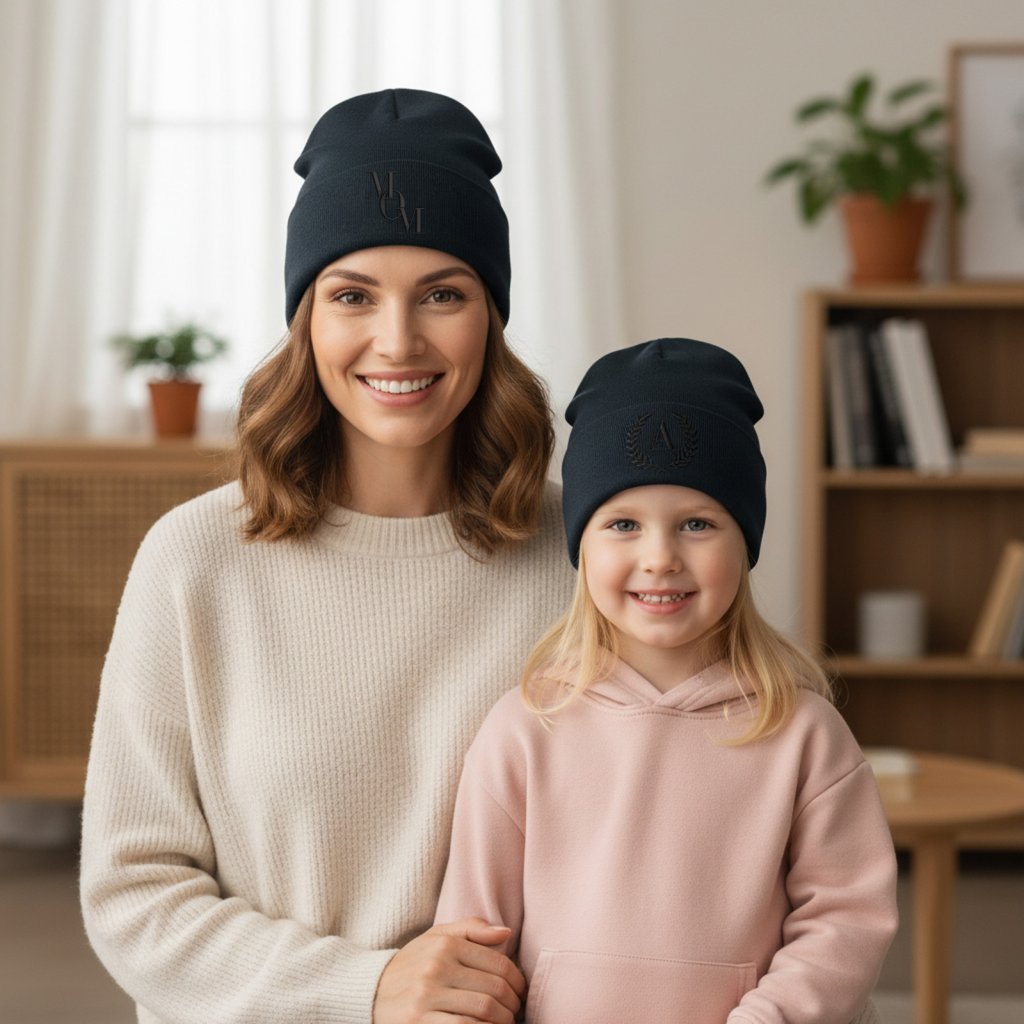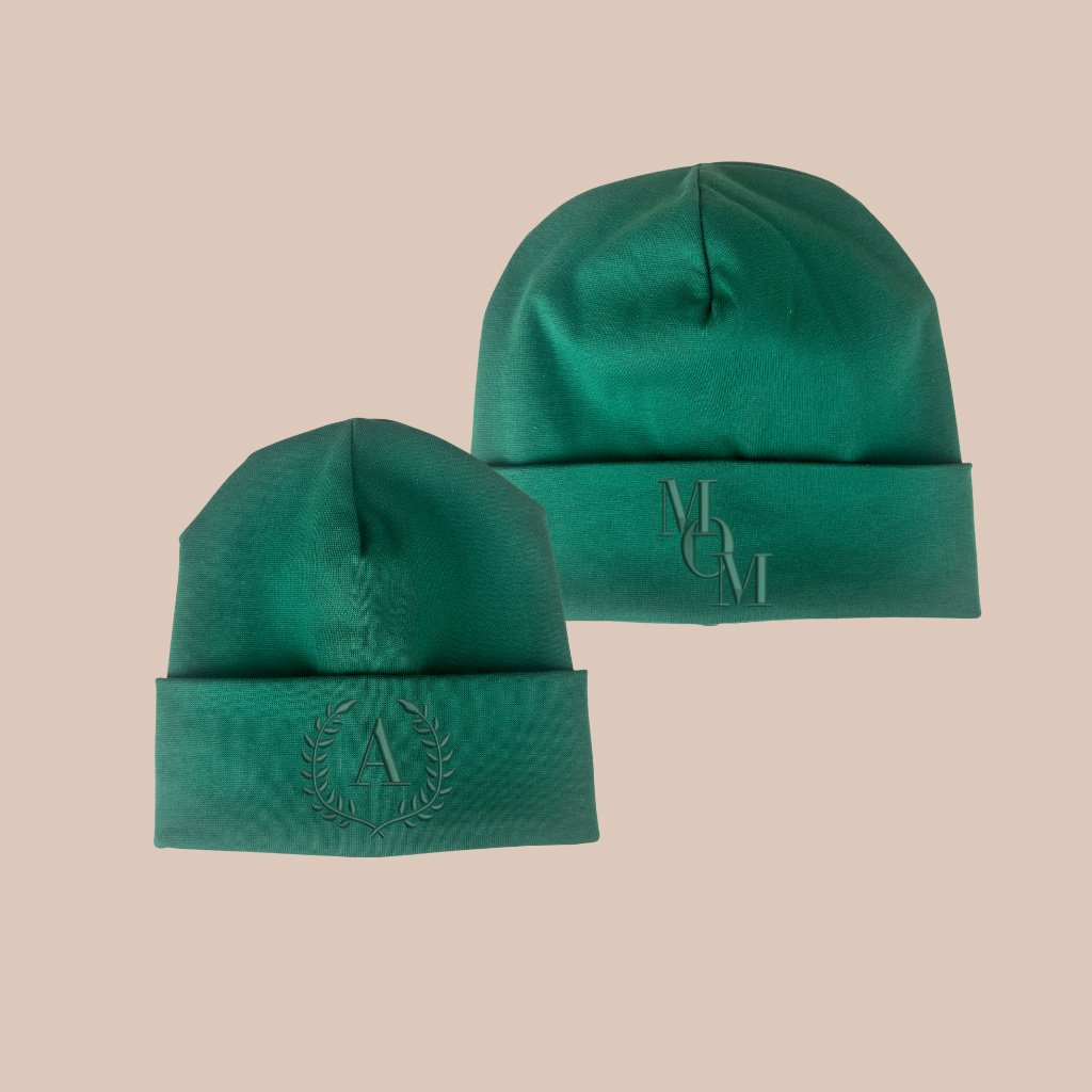 Jarní párová čepička s vyšitím pro mámu a dítě