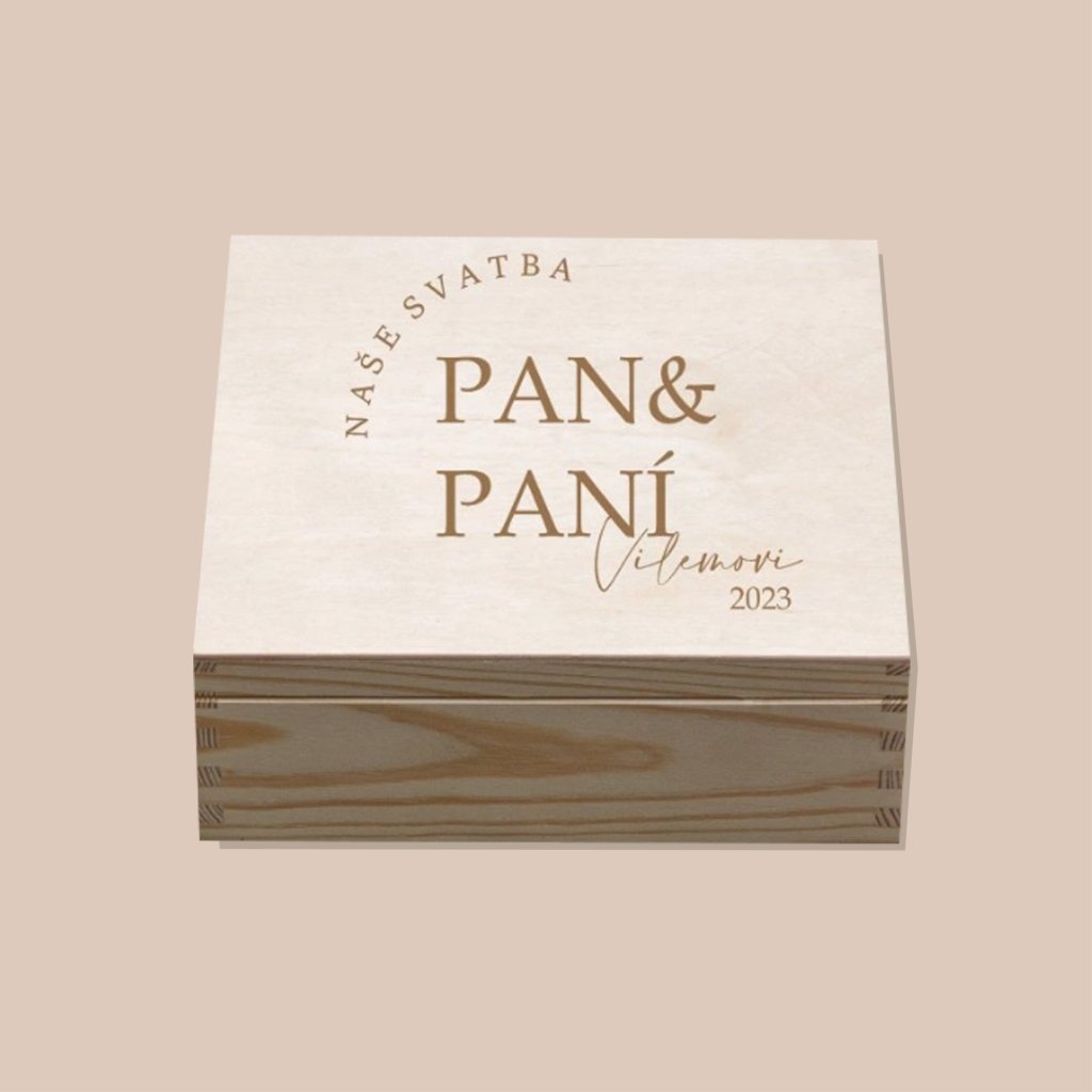 Krabička s vlastním příjmením PAN A PANÍ (22x22 cm)