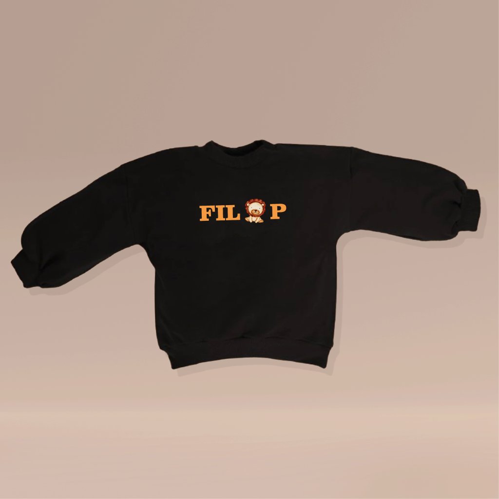 Dětská mikina s balonovými rukávy a potiskem jména dítěte, které je doplněno roztomilým obrázkem dle Vaší volby.