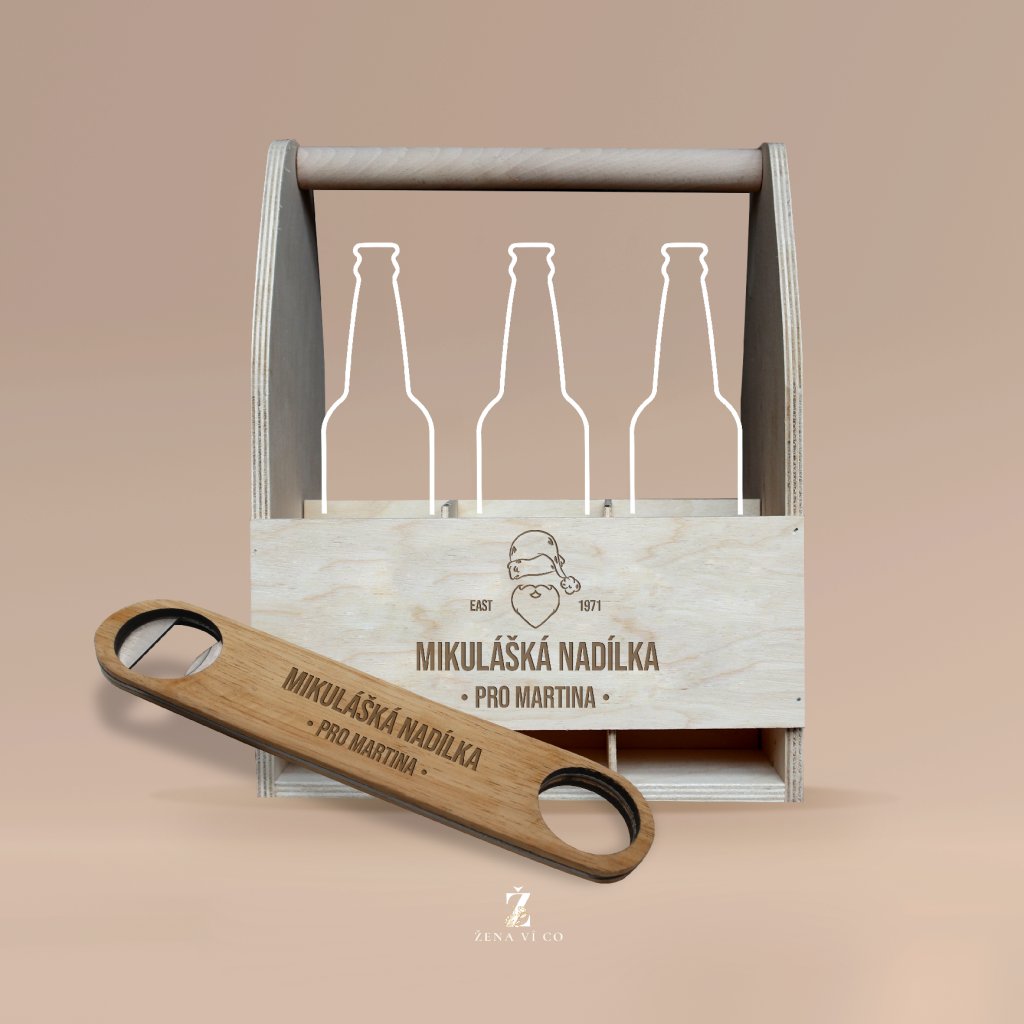 Mikulášská nadílka pro bráchu - přenoska s otvírákem (6 Ks piva)