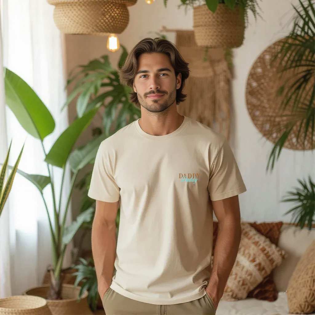 Toto tričko s decentním pastelovým vyšitím DADDY je navržené pro ty, kteří mají rádi nenápadný styl s osobitým detailem. Perfektní dárek ke Dni Otců, narozeninám nebo jen tak pro radost.