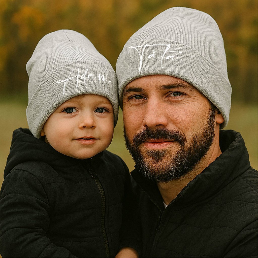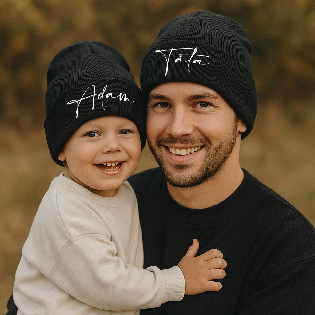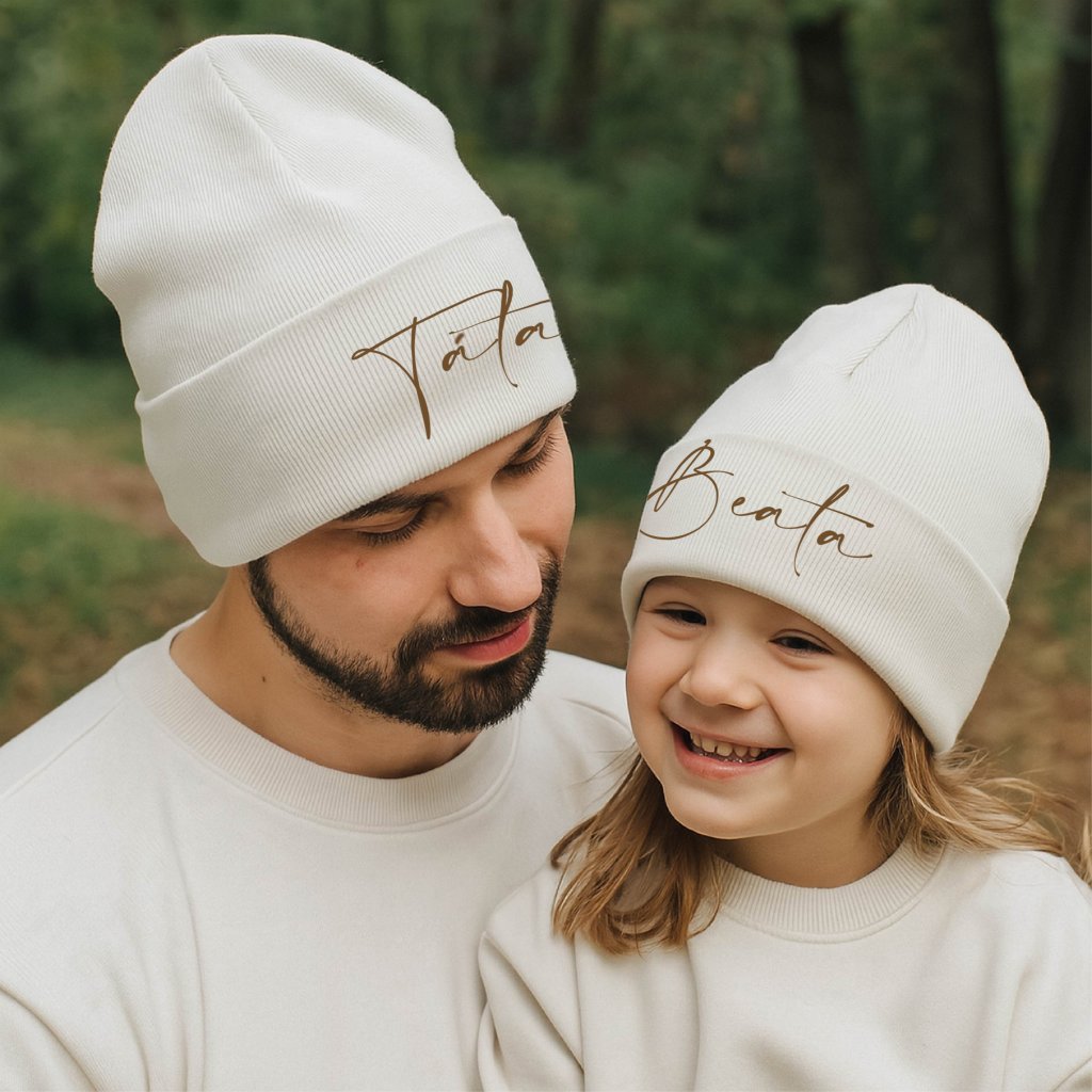 Párové čepičky z vroubkovaného úpletu pro TÁTU A DÍTĚ