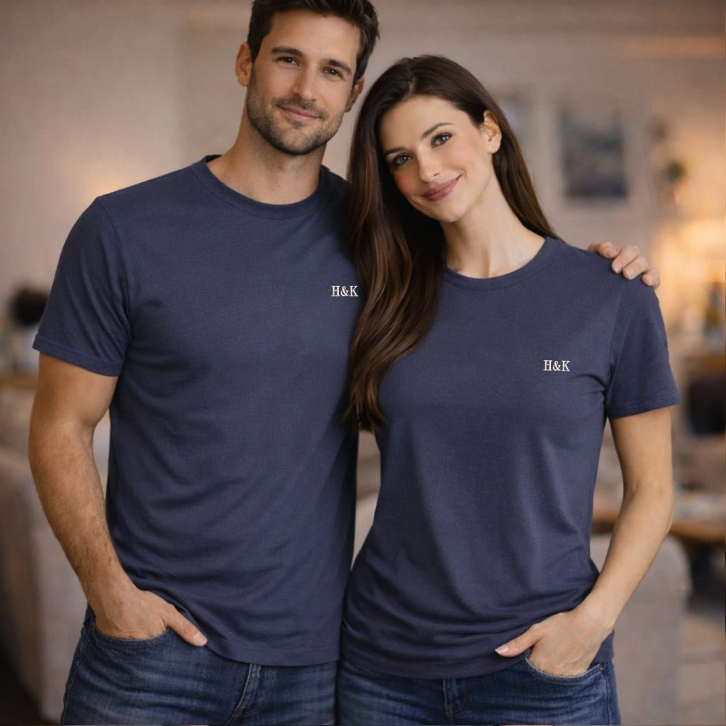 Stylová párová trička s výšivkou, která budou osobitým doplňkem Vašeho šatníku. Monogram může obsahovat iniciály obou partnerů a to v elegantním a moderním stylu. Objednejte trička pro sebe a svou polovičku a vyjádřete svou lásku s tímto jedinečným kouskem.