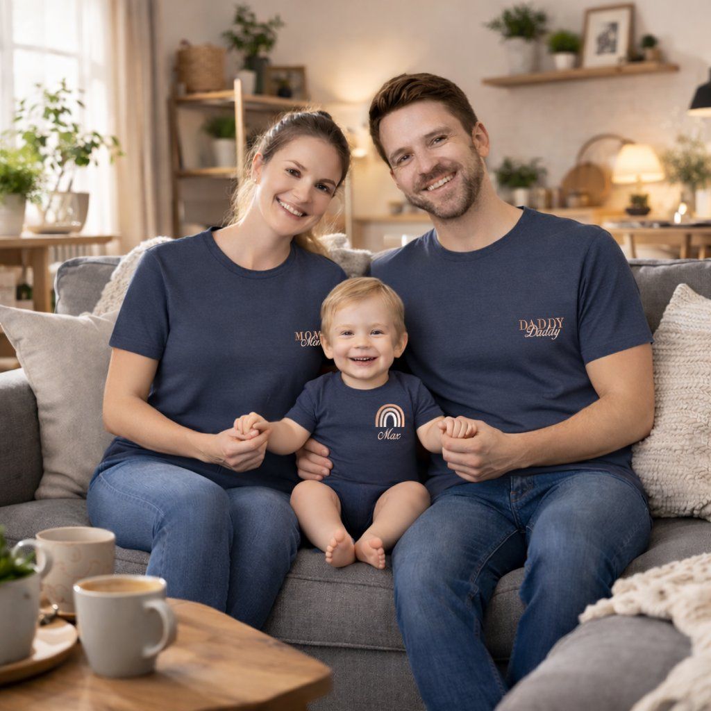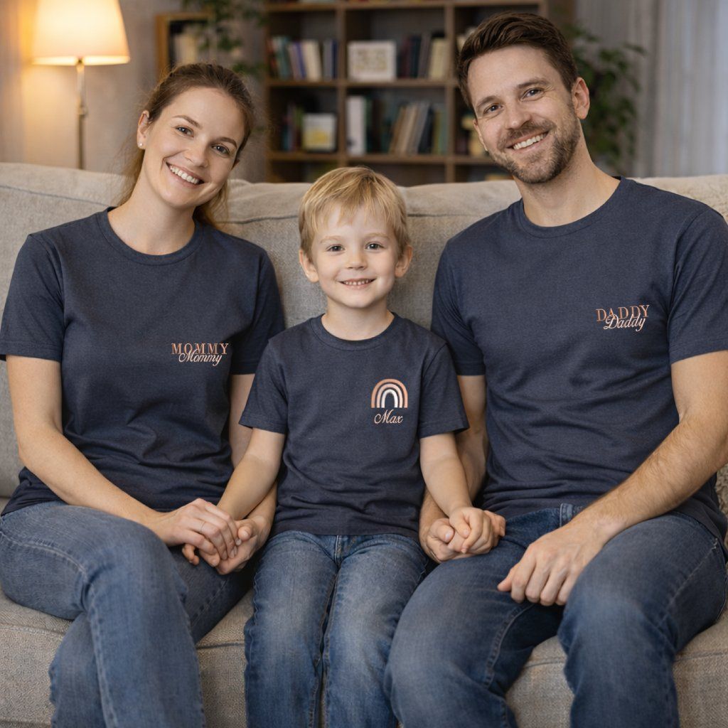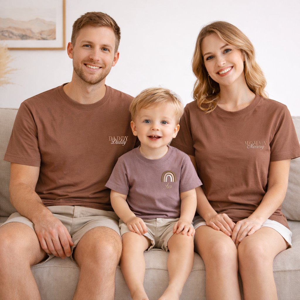 Užijte si rodinné chvíle v jedinečném stylu s našimi personalizovanými tričky. Každý člen Vaší rodiny si zaslouží své vlastní tričko s originální výšivkou Mommy, Daddy a duhy se jménem Vašeho dítěte, které udělá každou společnou chvíli ještě výjimečnější. Do poznámky uveďte jméno dítěte. Objednejte si rodinná trička ještě dnes a vytvořte tak dokonalý outfit pro celou rodinu.