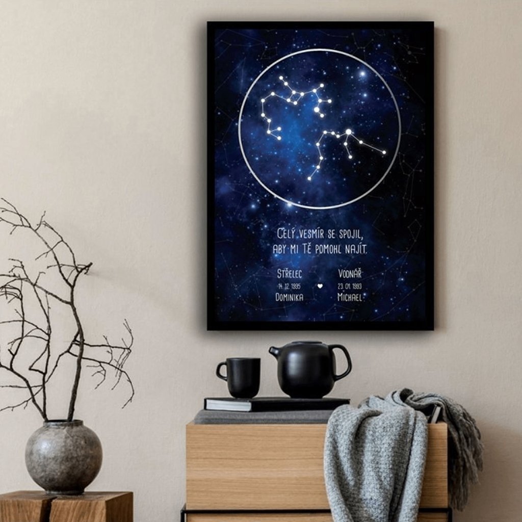 Plakát ZNAMENÍ V SOUHVĚZDÍ, ZÁŘIVÁ OBLOHA, pro pár