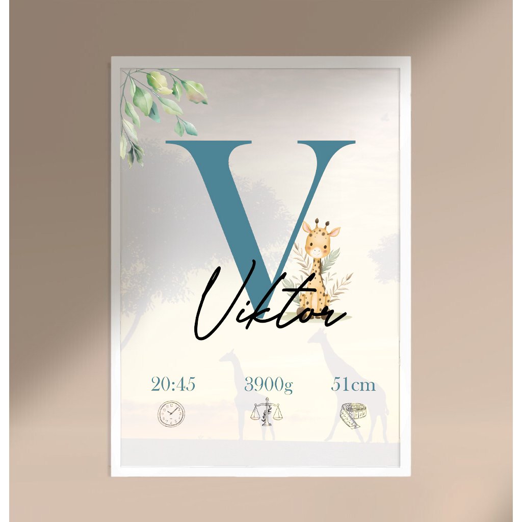 Plakát s údaji o narození PRO CHLAPEČKA - ŽIRAFA