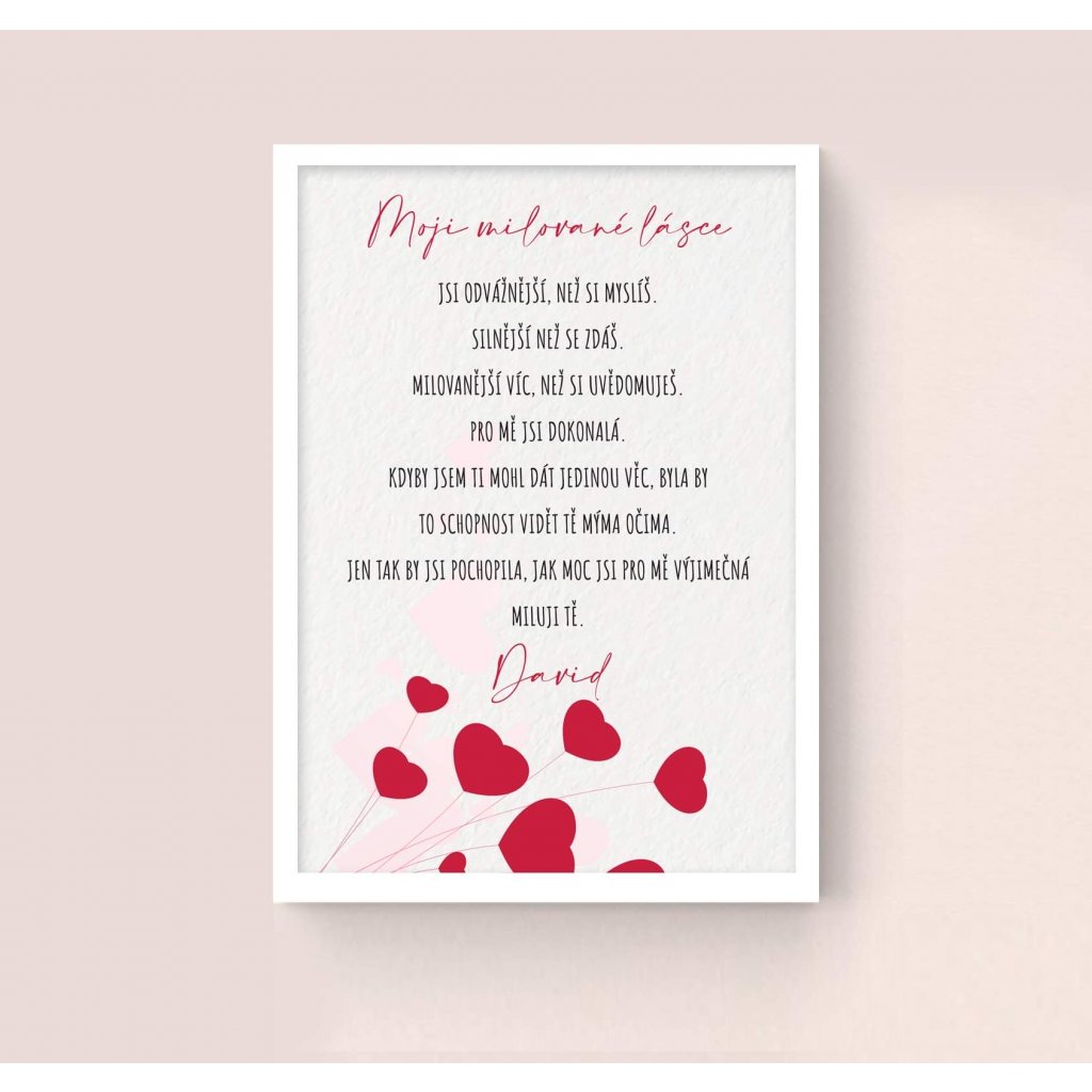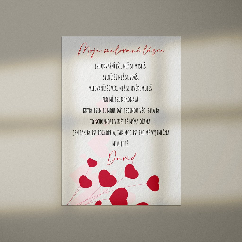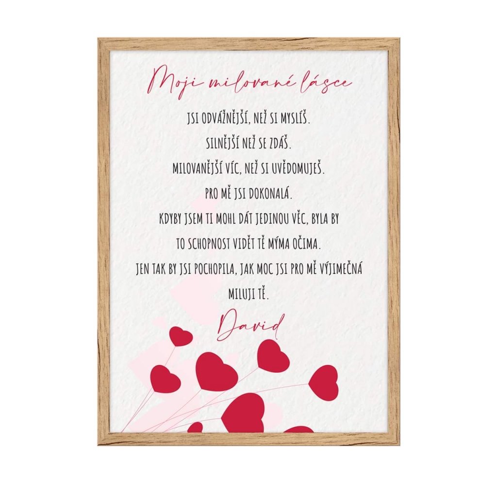Objevte kouzlo personalizovaných plakátů s naším produktem "Plakát MOJÍ MILOVANÉ LÁSCE". Tento jedinečný plakát vám umožní zachytit a vystavit nejkrásnější momenty vašeho života, které mohou zdobit jakoukoliv část vašeho domova. Ať už se jedná o vzpomínky na svatbu, narozeniny nebo jiné významné události, tento plakát přinese do vašeho interiéru osobní dotek a eleganci.
